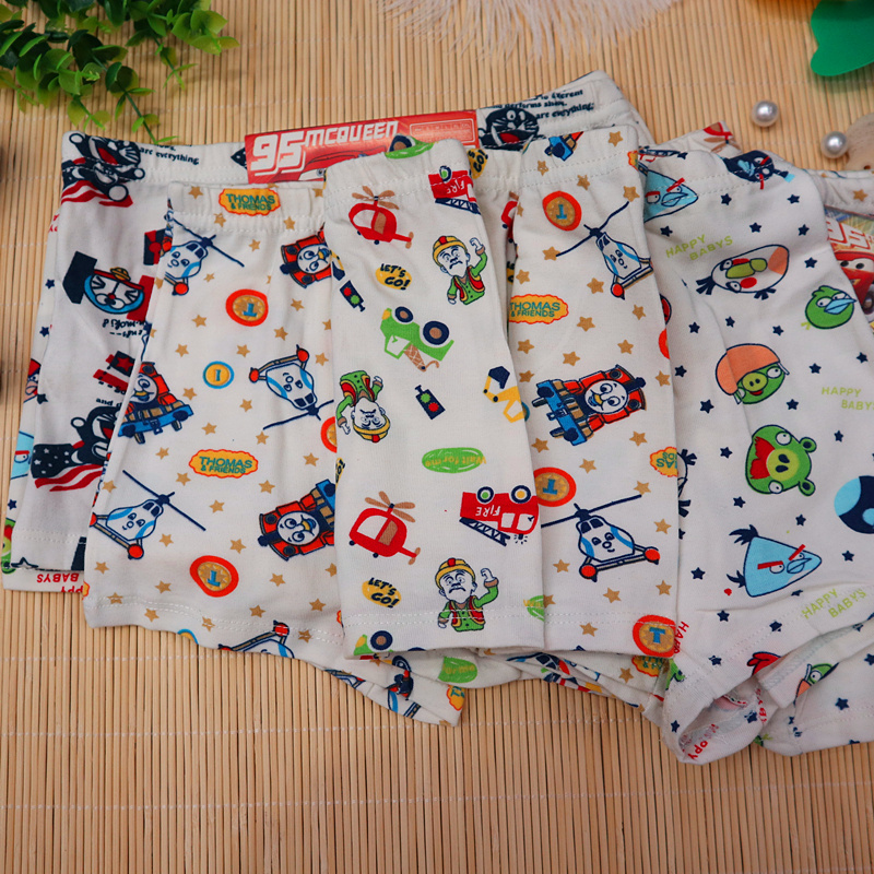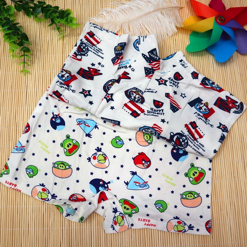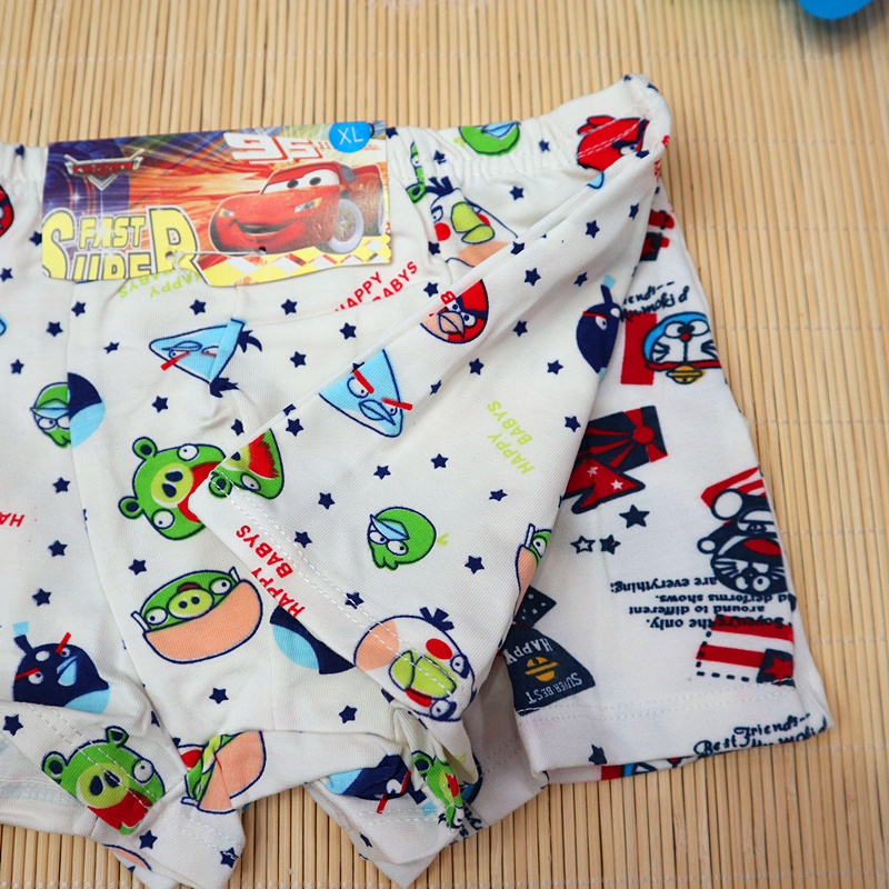 男孩男童内裤纯棉白底卡通印花5~9岁中童全棉透气宝宝平角裤厂家