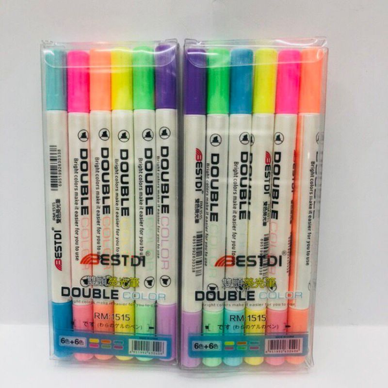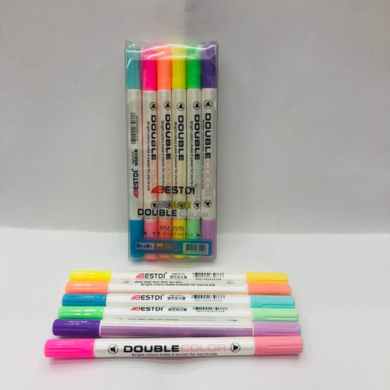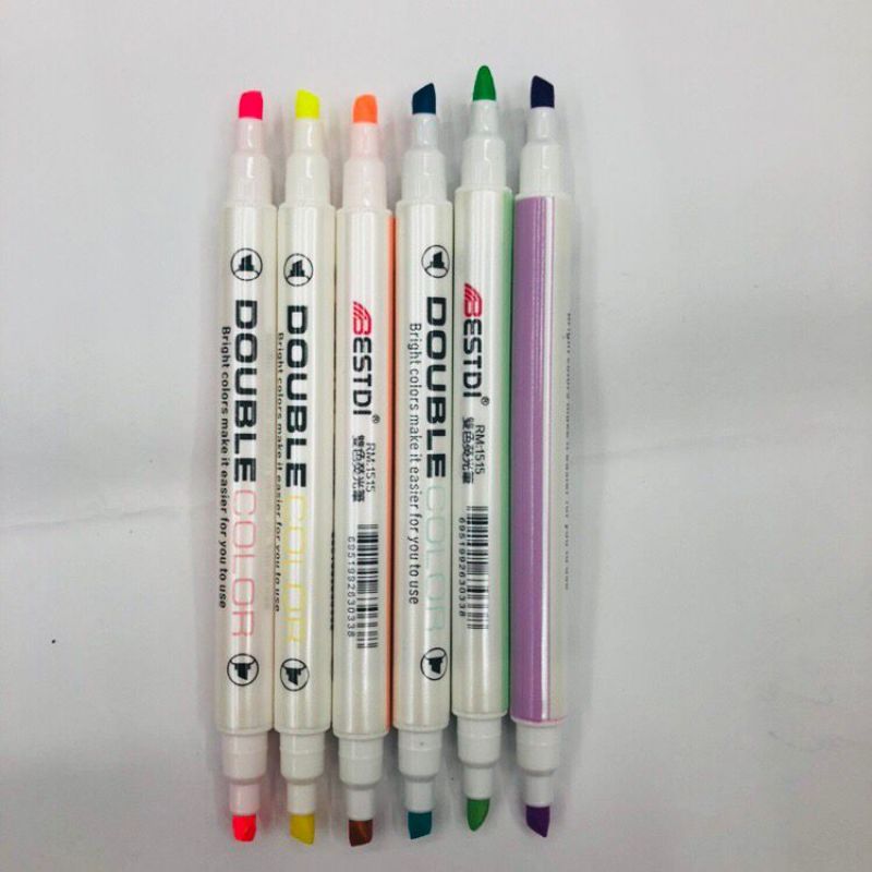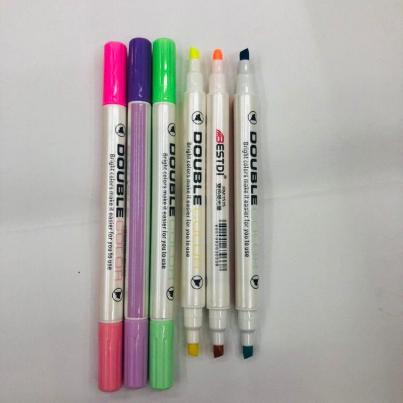 双头荧光笔 双色记号笔一头荧光色一头糖果色 荧光笔批发6支套装