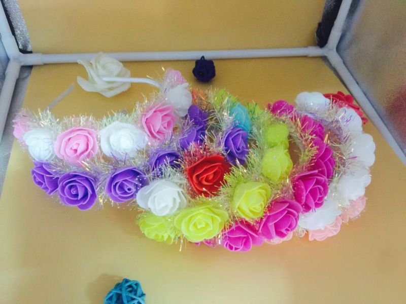 新款发饰仿真金色玫瑰花环带灯头饰发带头花海边度假