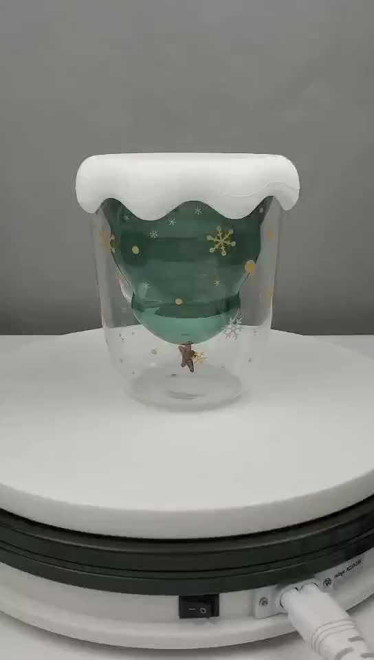 创意双层玻璃杯 圣诞树星愿水杯耐高温马克杯圣诞杯星愿杯