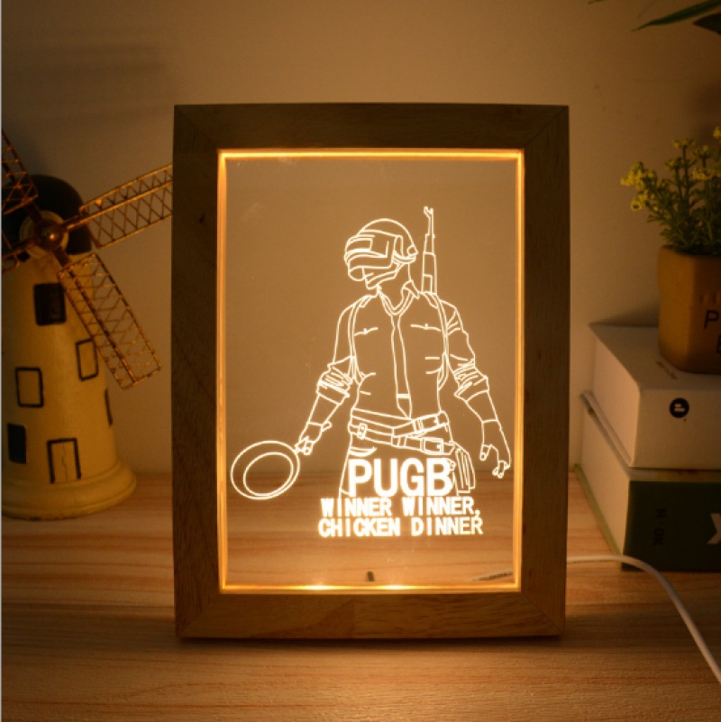 实木相框led台灯创意礼品床头3d小夜灯亚克力橡木氛围灯