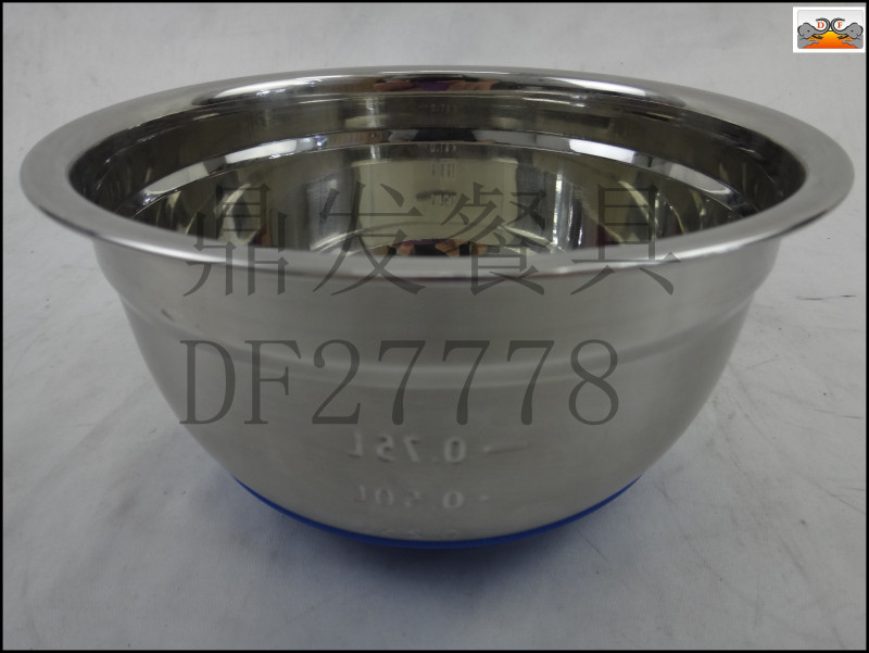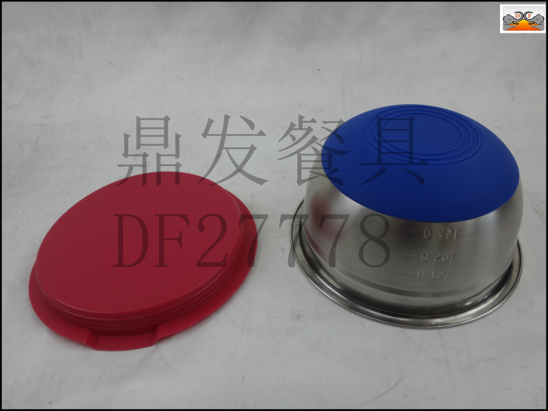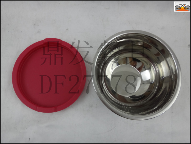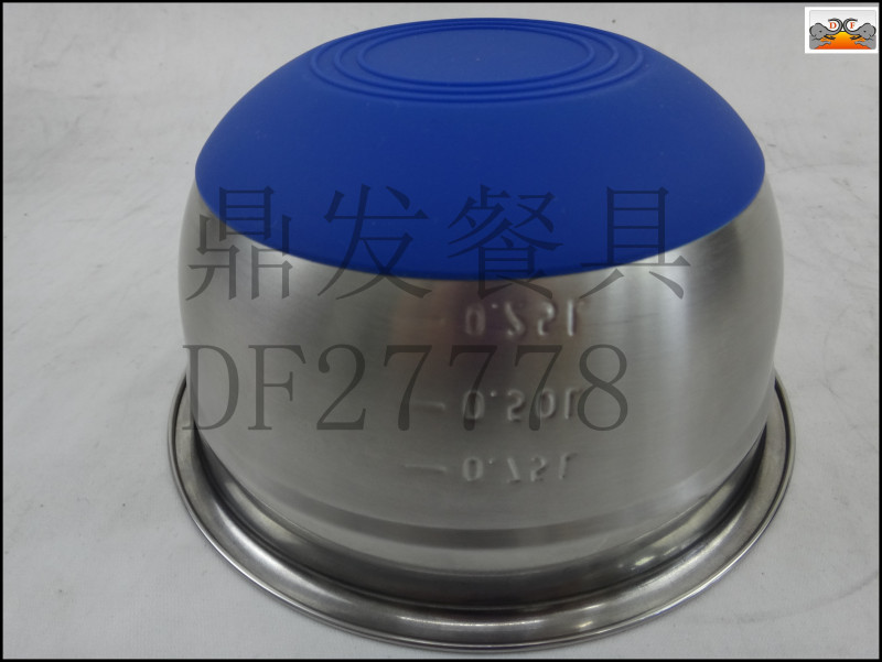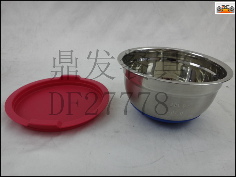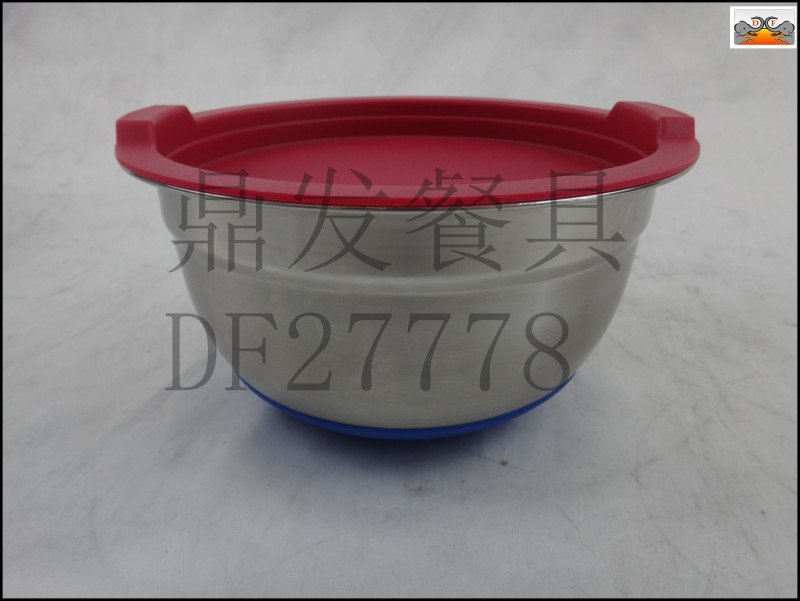 DF27778鼎发不锈钢厨房酒店用品餐具带盖硅胶底沙拉盆料理盆