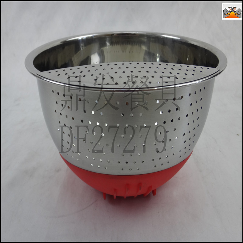 DF27279鼎发不锈钢厨房酒店用品彩色硅胶底沙拉碗