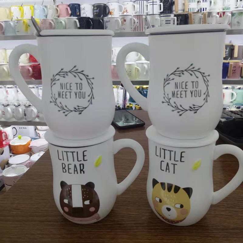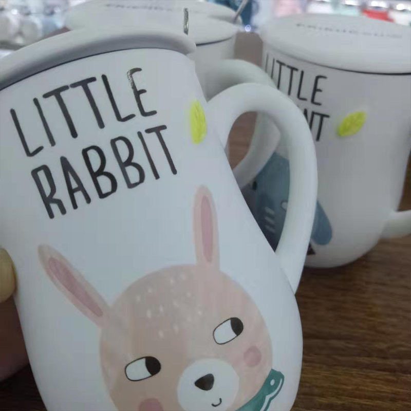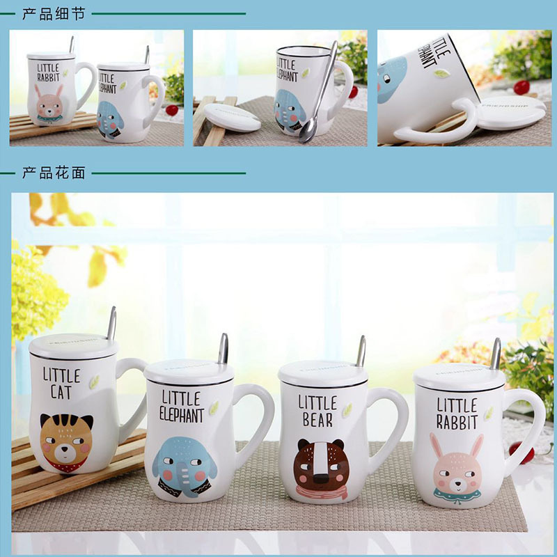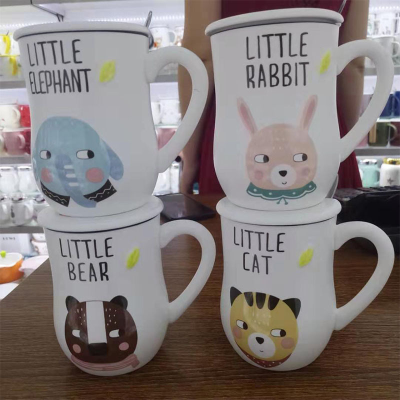 唯格陶瓷杯小动物王国卡通陶瓷水杯家用可爱喝水杯情侣(72个装)