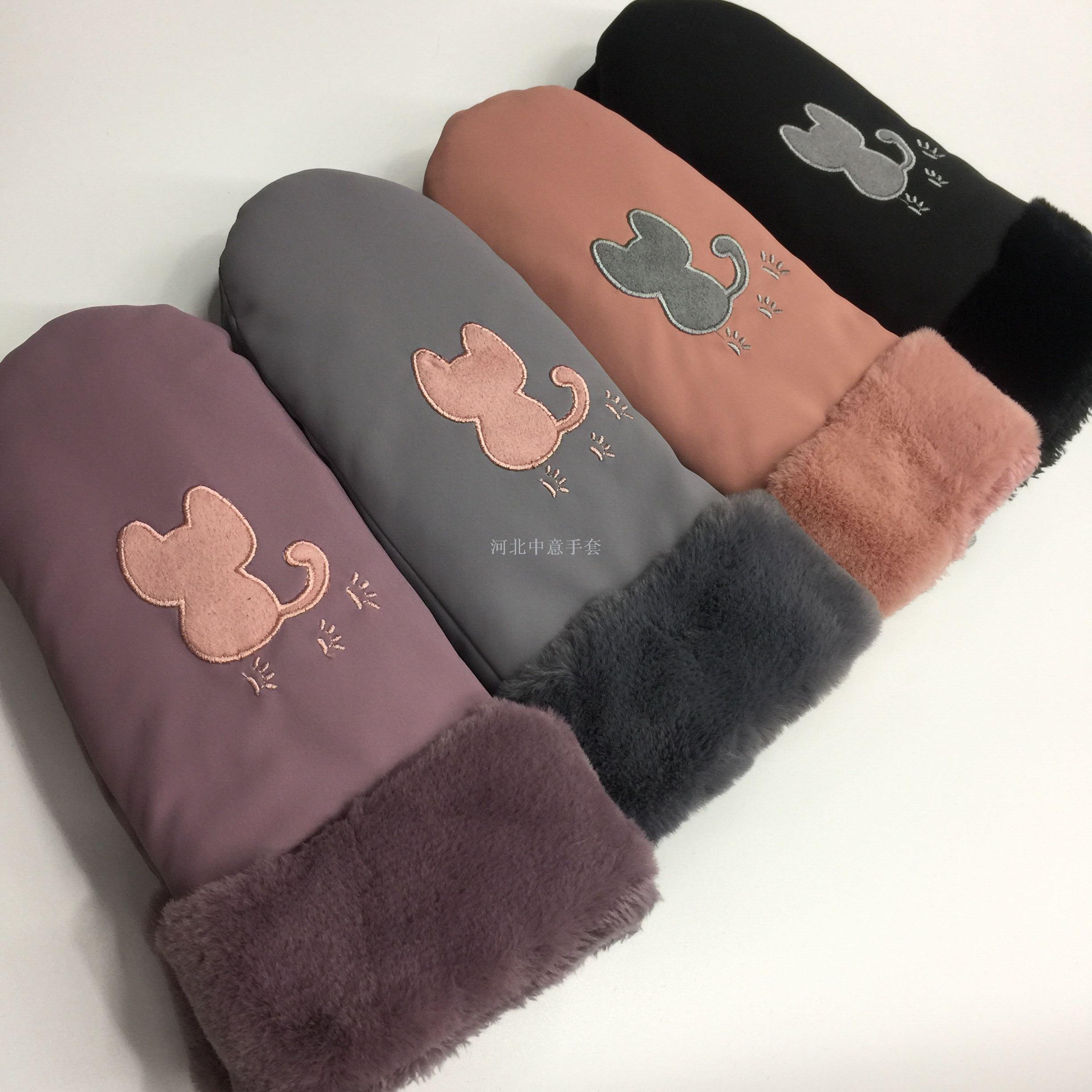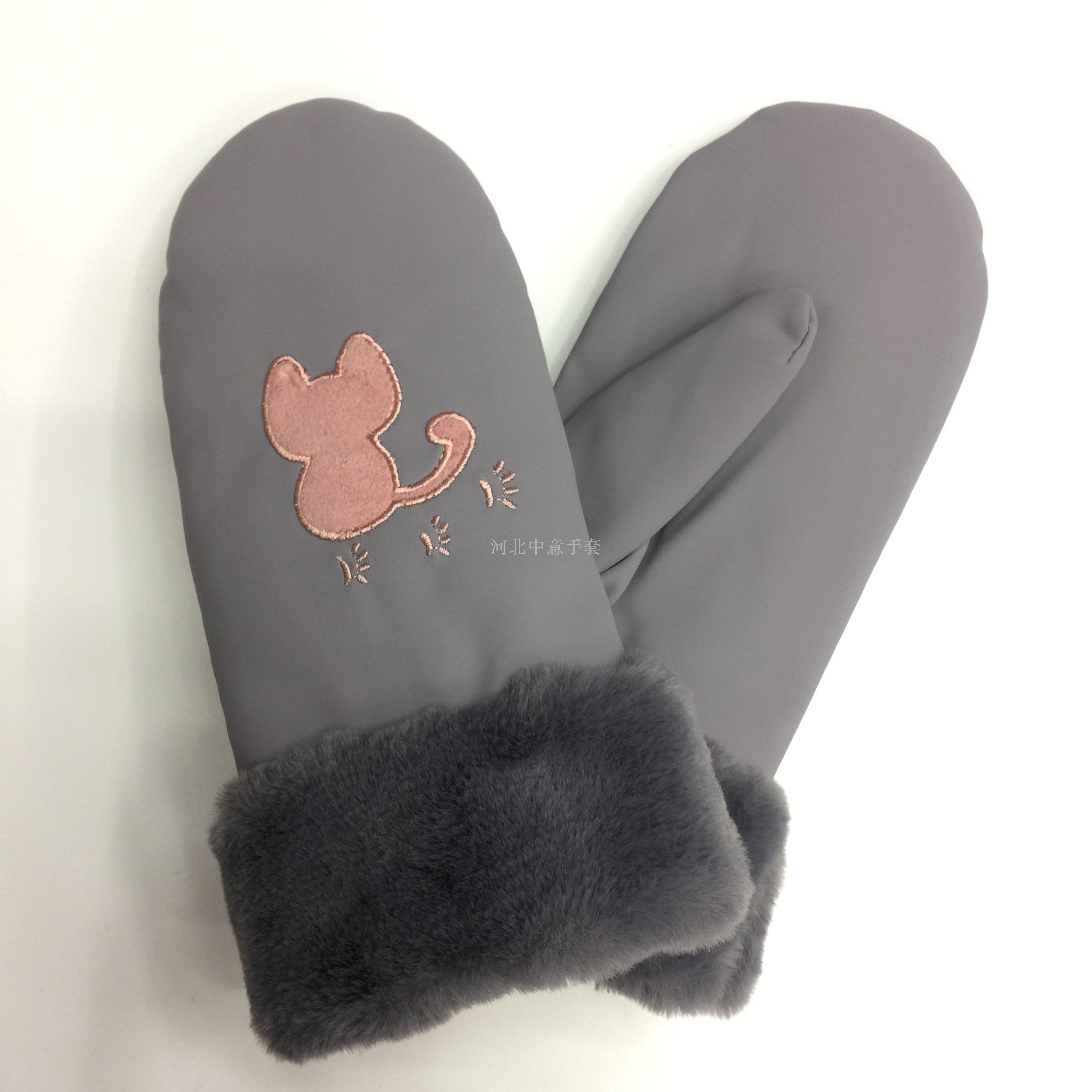 手套厂家新款女士挂脖包指可爱手套加绒加厚冬季保暖防水学生手套