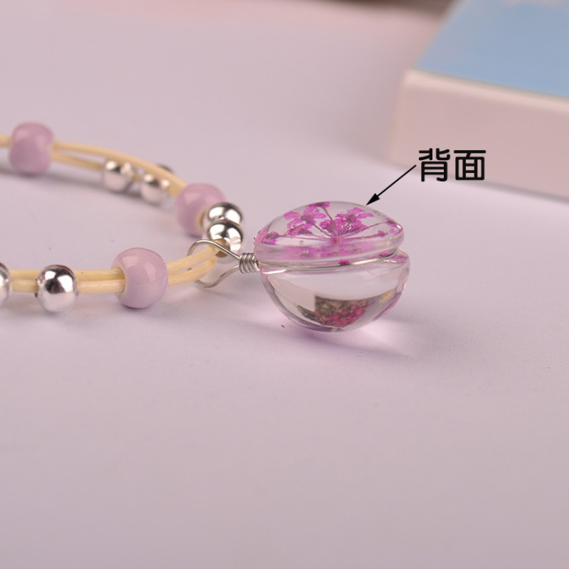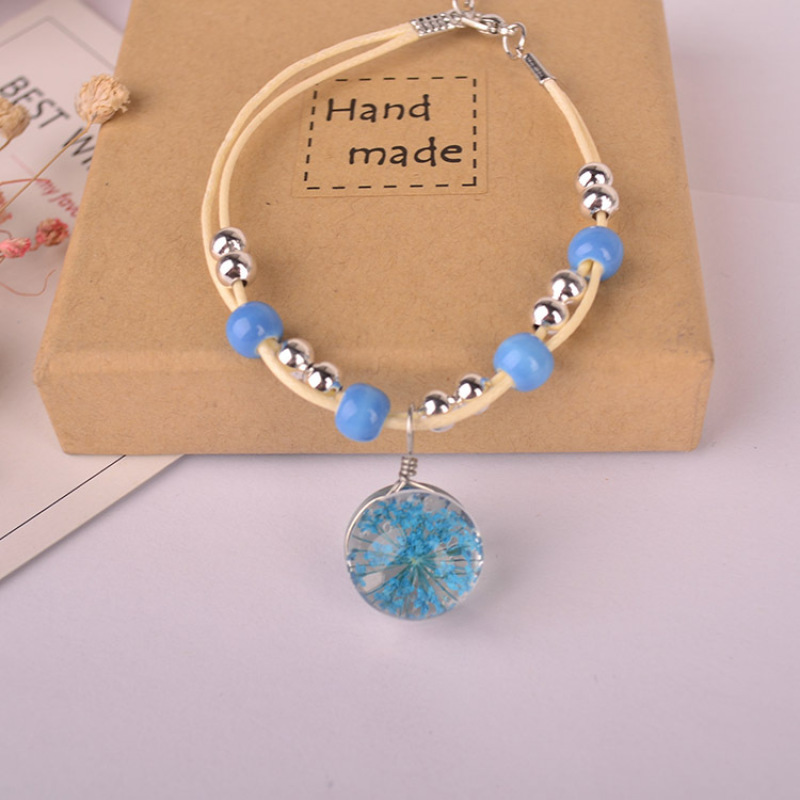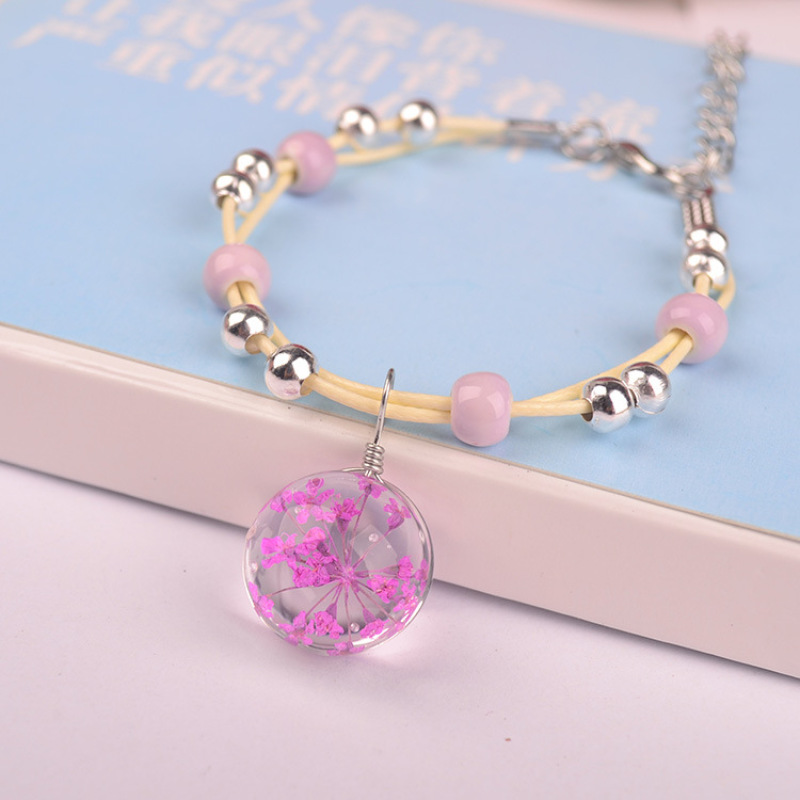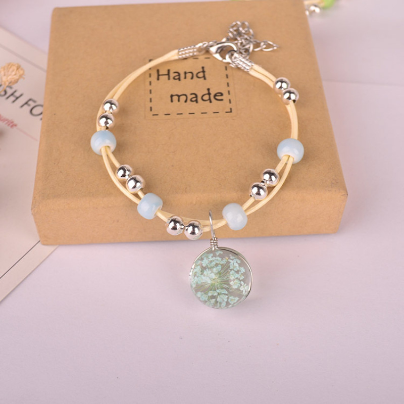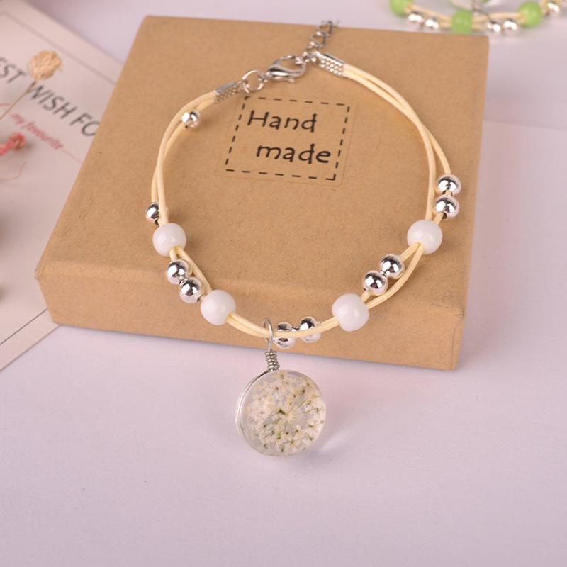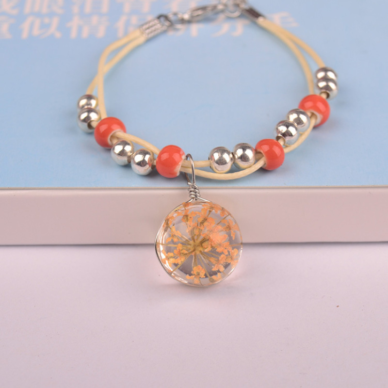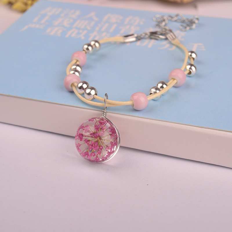 森系女生陶瓷真花干花手链 玻璃球满天星饰品蕾丝花学生标本
