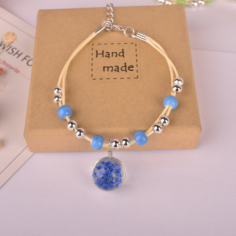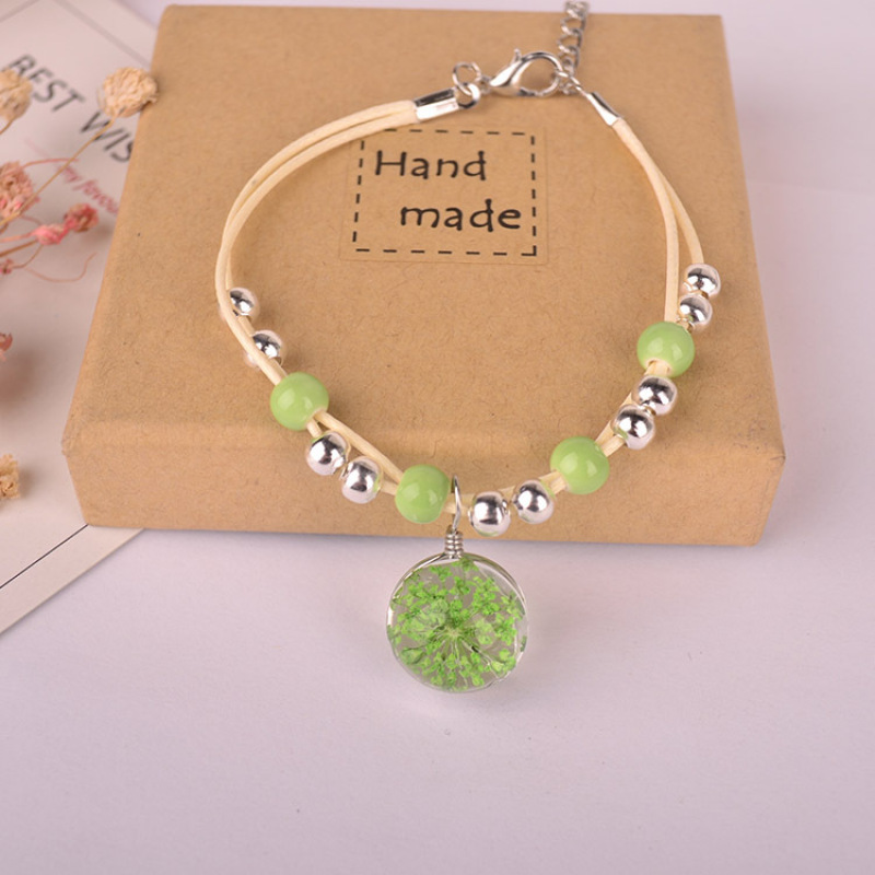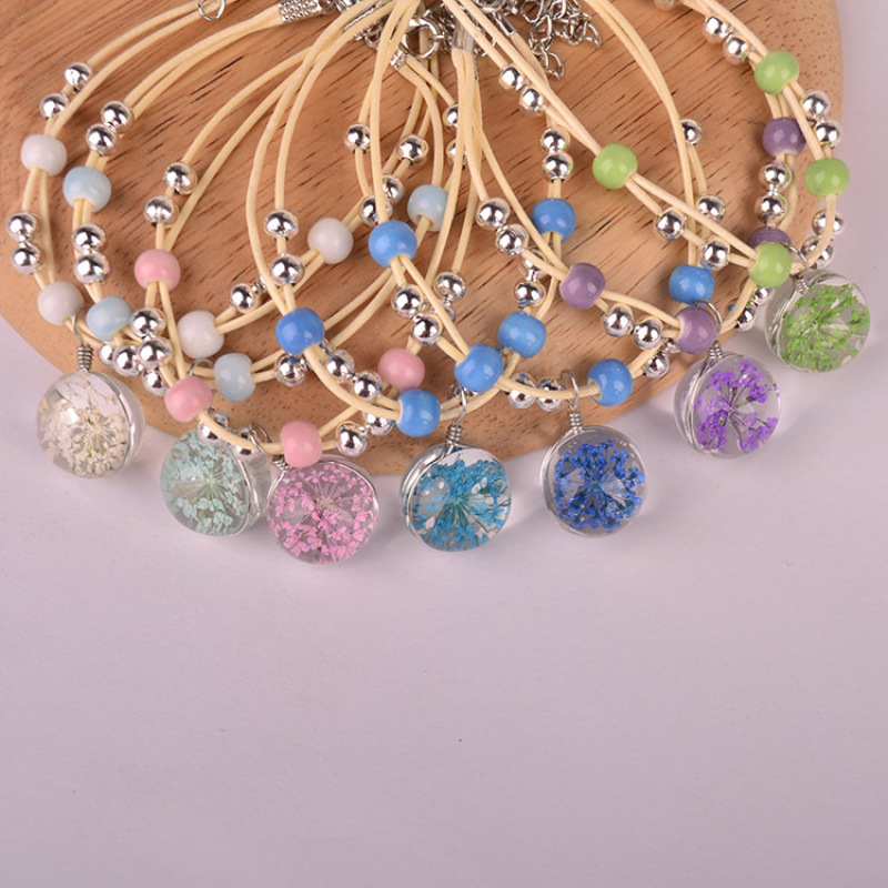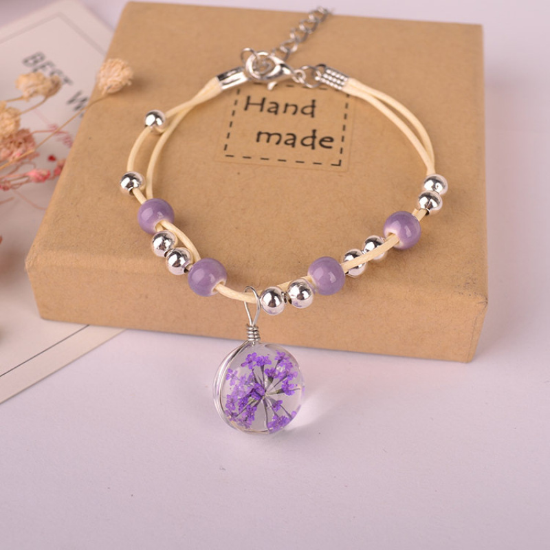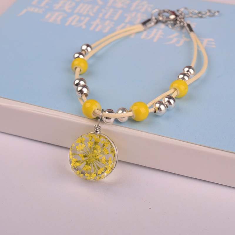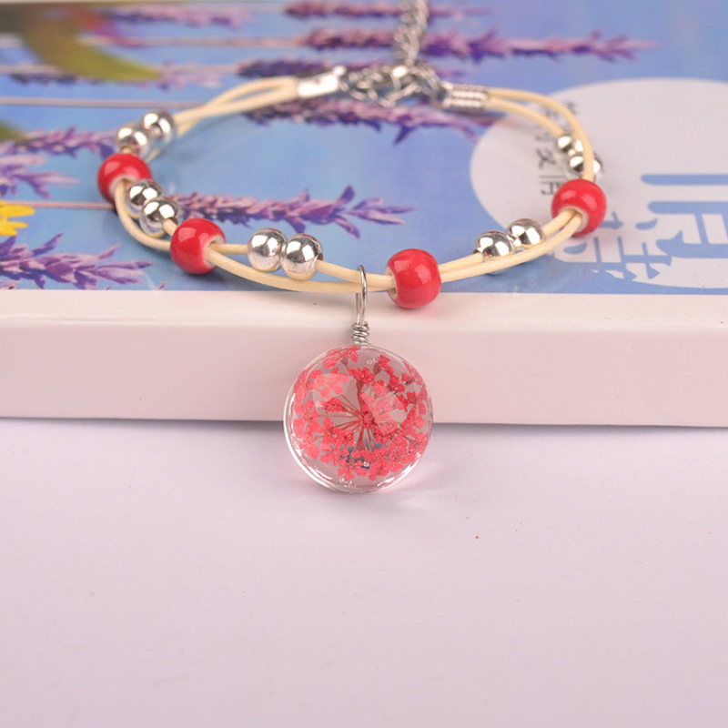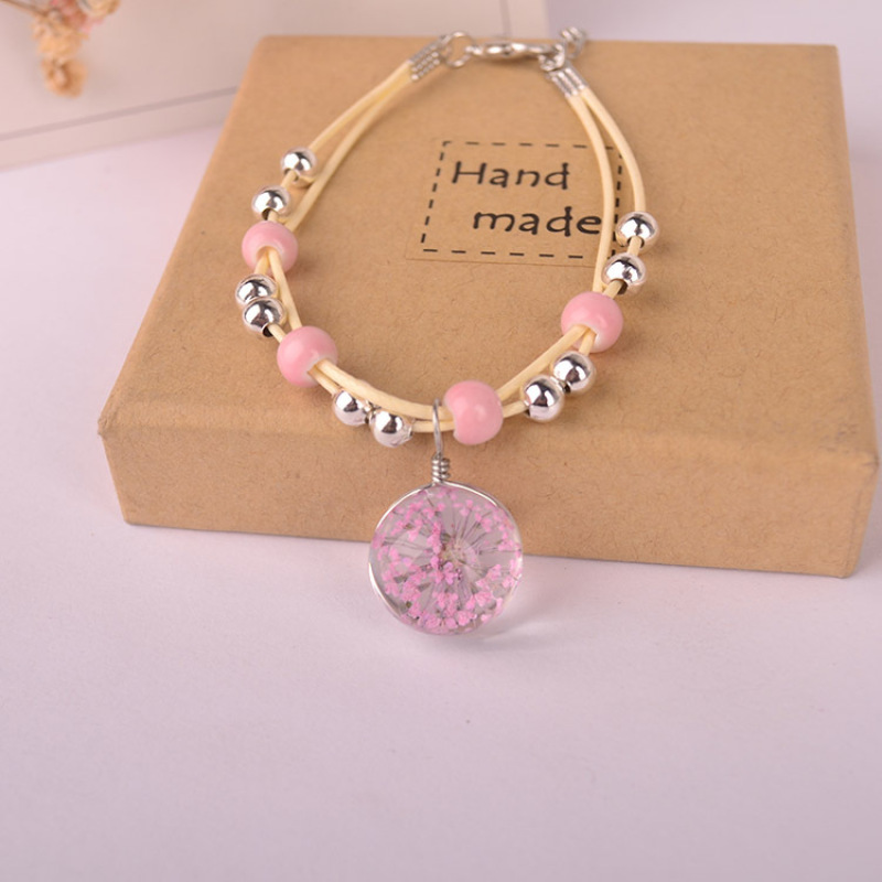 森系女生陶瓷真花干花手链 玻璃球满天星饰品蕾丝花学生标本
