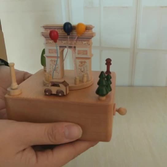 直销跨境现货欧式榉木凯旋门建筑模型音乐盒八音盒木质小手工艺品