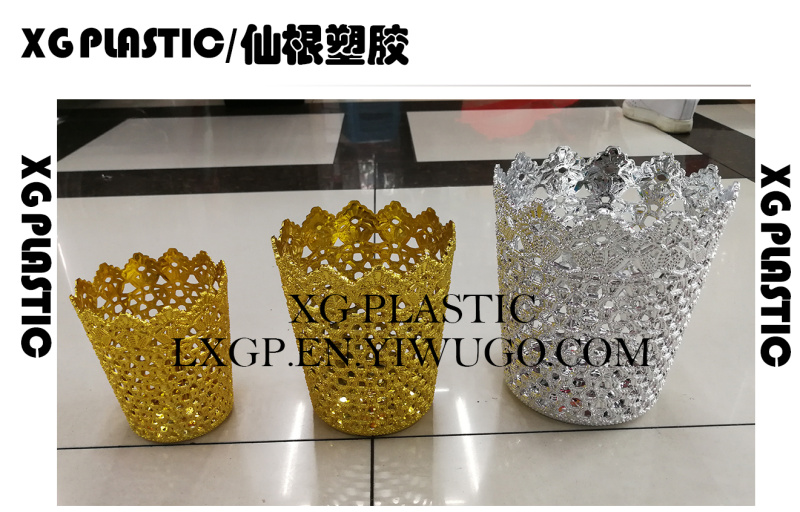 收纳桶创意笔筒镂空纸篓时尚桌面收纳篮置物篮迷你电镀金银收纳筒