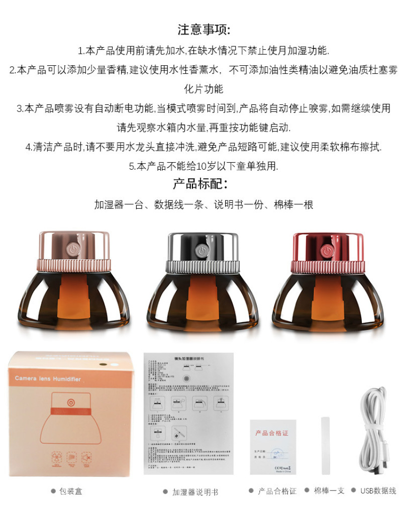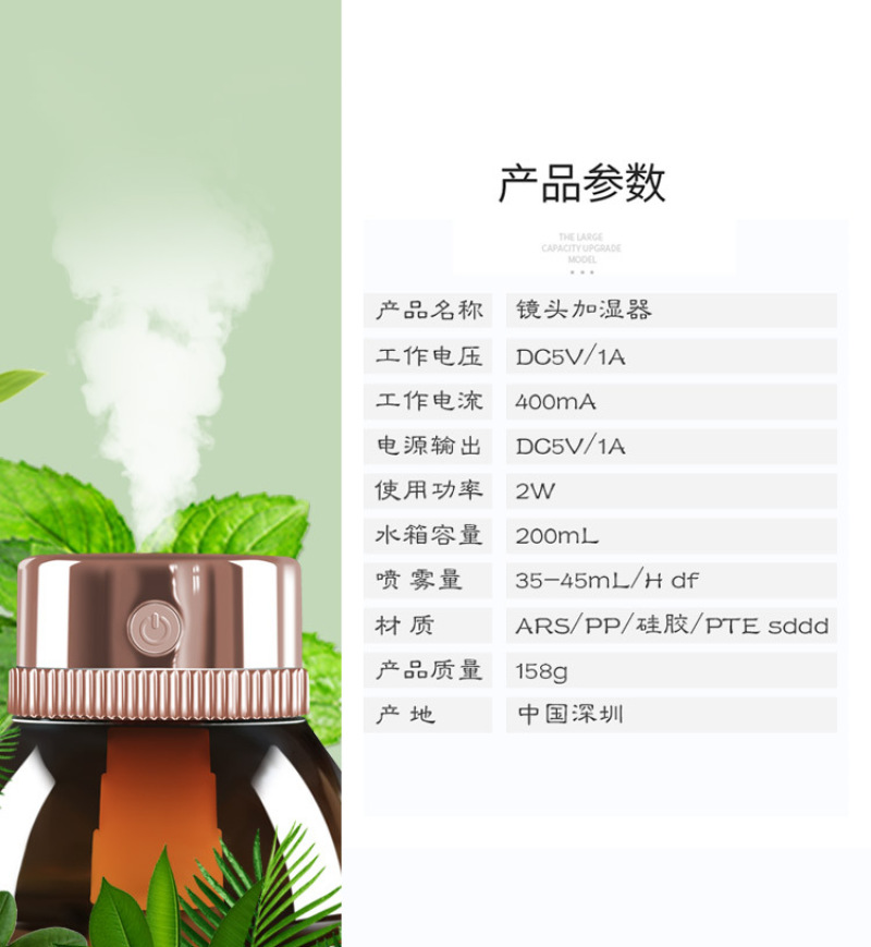 新款G1镜头加湿器迷你车载室内负离子空气净化静音夜灯加湿器