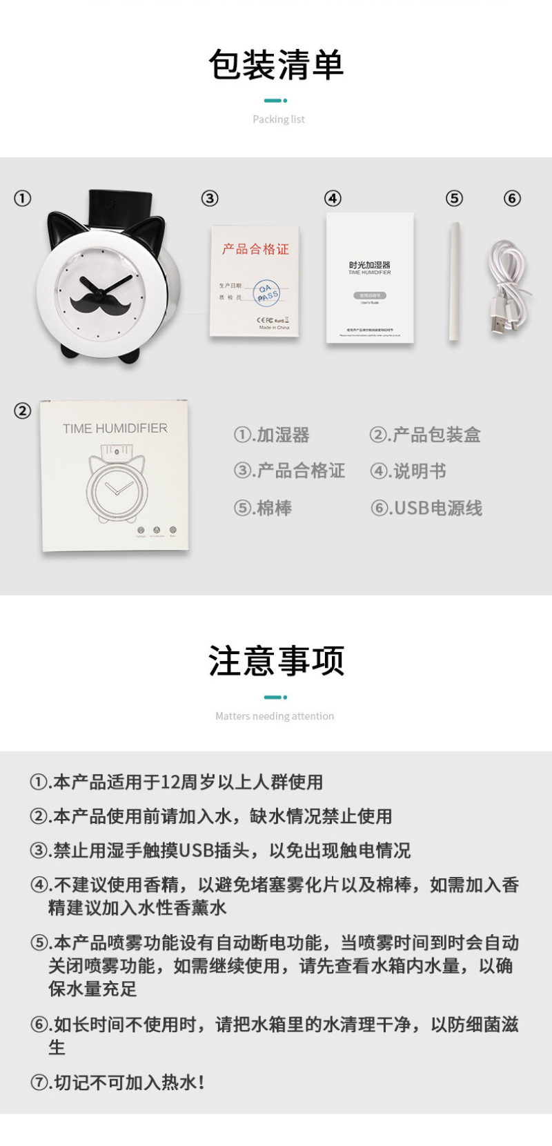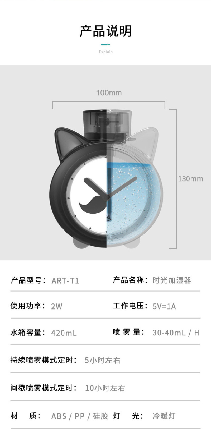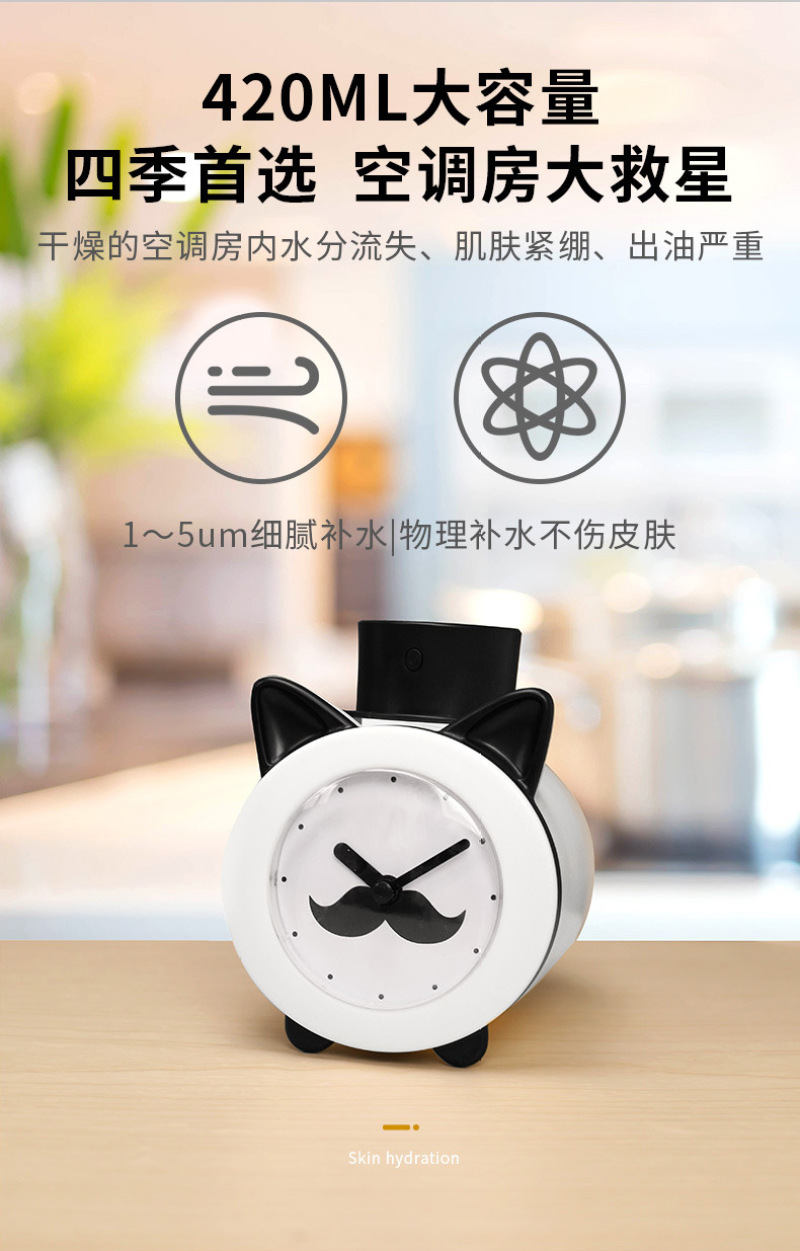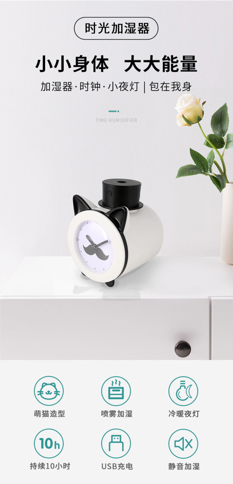 时光猫加湿器USB空气净化器空调家用小夜灯加湿器时钟动物加湿器