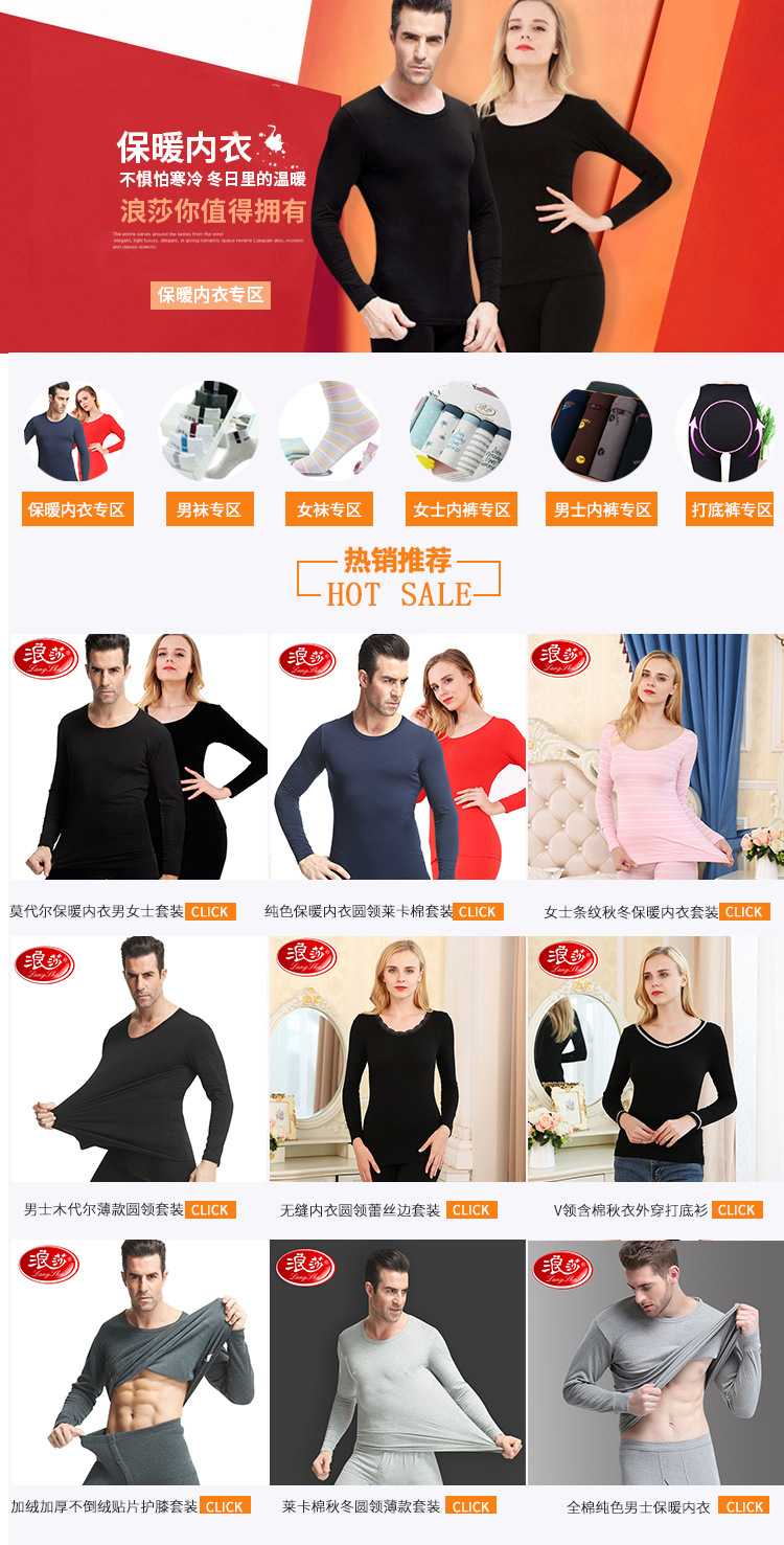 浪莎男士秋冬加绒加厚不倒绒圆领保暖内衣纯色女礼盒内衣套装批发