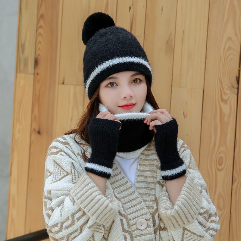 女士帽子韩国新款保暖纯色大毛球可爱针织帽子