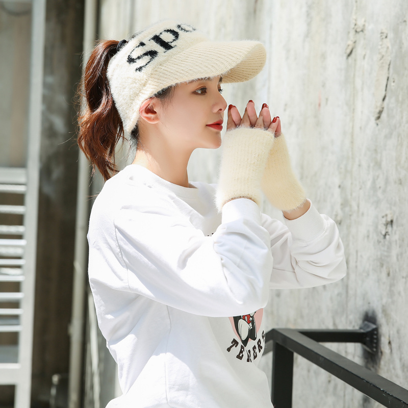 女士帽子韩国新款保暖休闲针织帽子同色手套