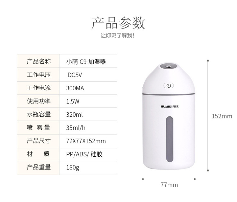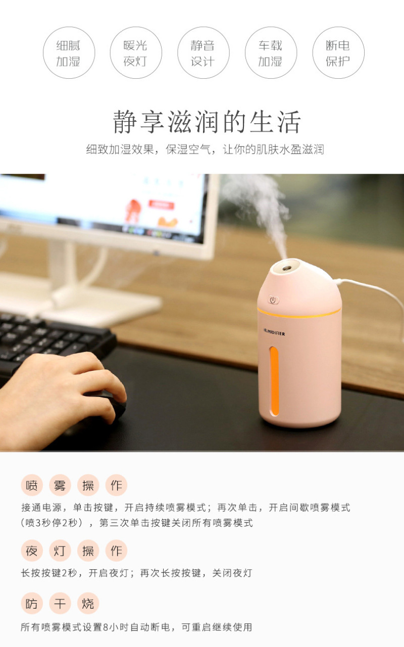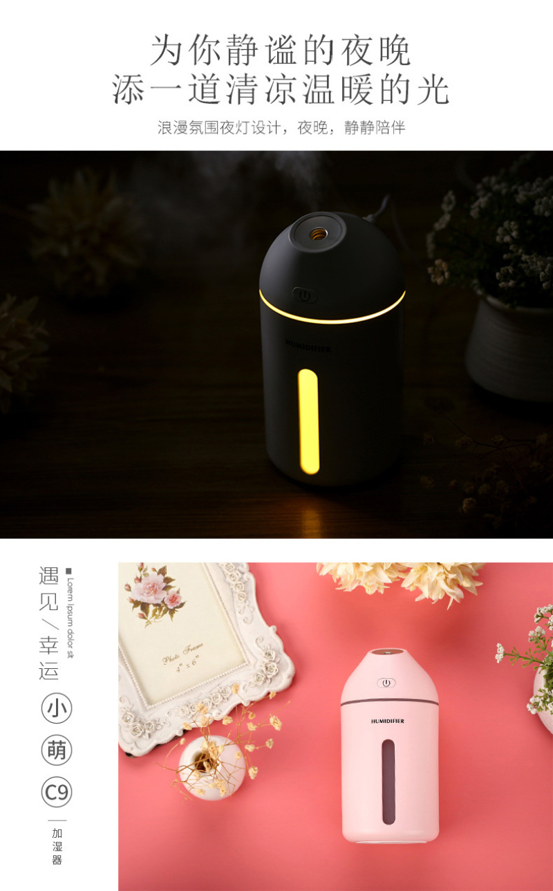 新款小萌C9加湿器USB空气迷你加湿七彩灯静音便捷美容保湿加湿器