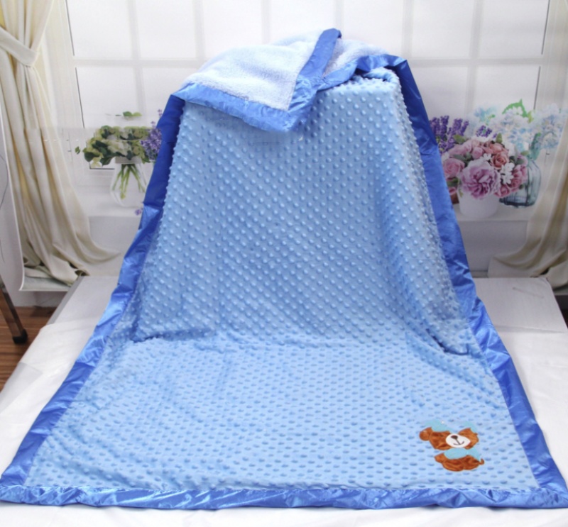 外贸新款超柔毛毯豆豆毯 春夏婴儿压泡印花双层 儿童洞洞盖毯