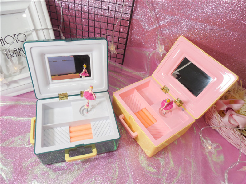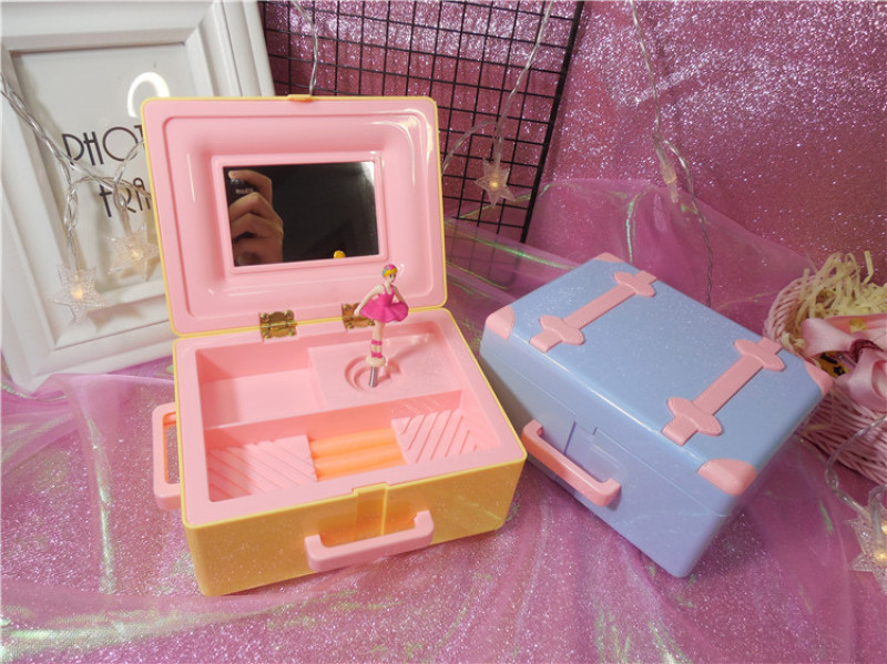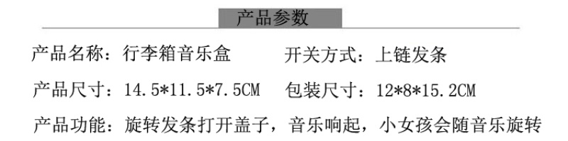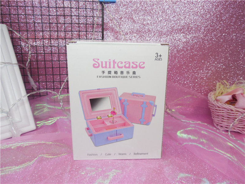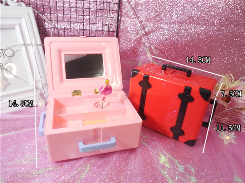 六一儿童节生日节日礼物卡通可爱复古手提箱音乐盒旋转女孩八音盒