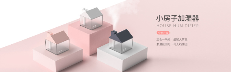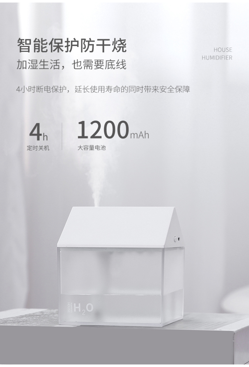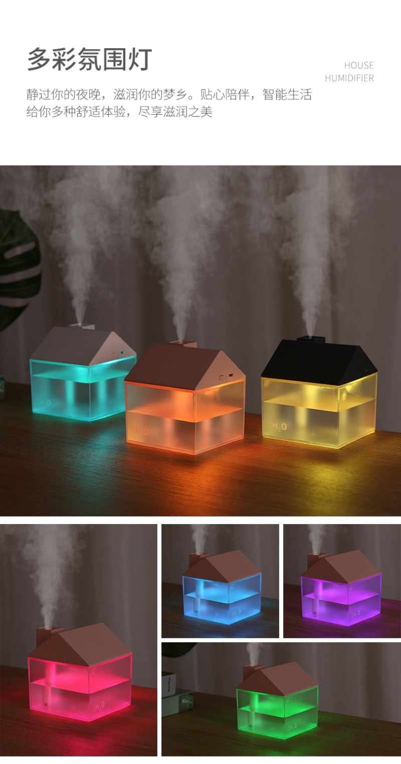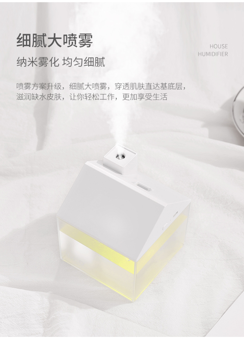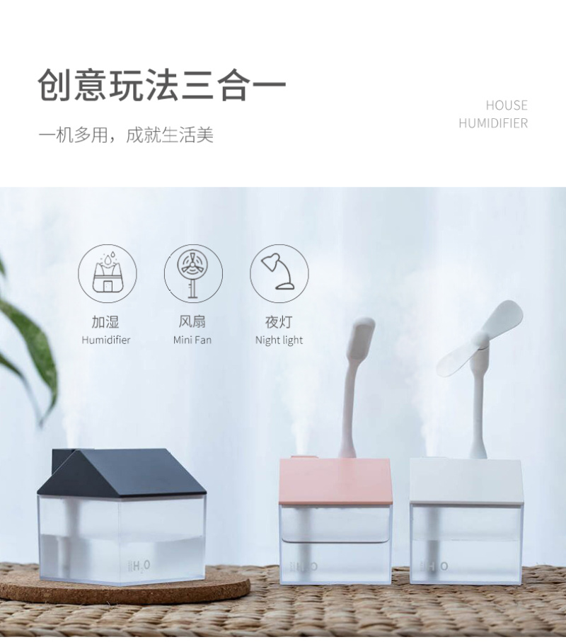 小房子加湿器迷你内置电池车载室内三合一空气净化加湿器