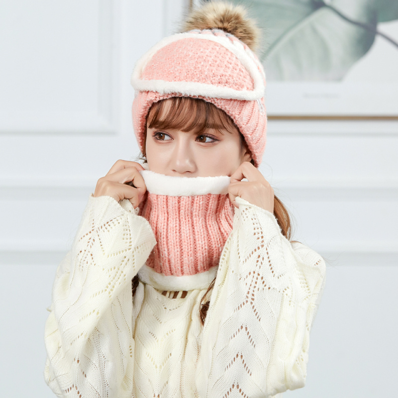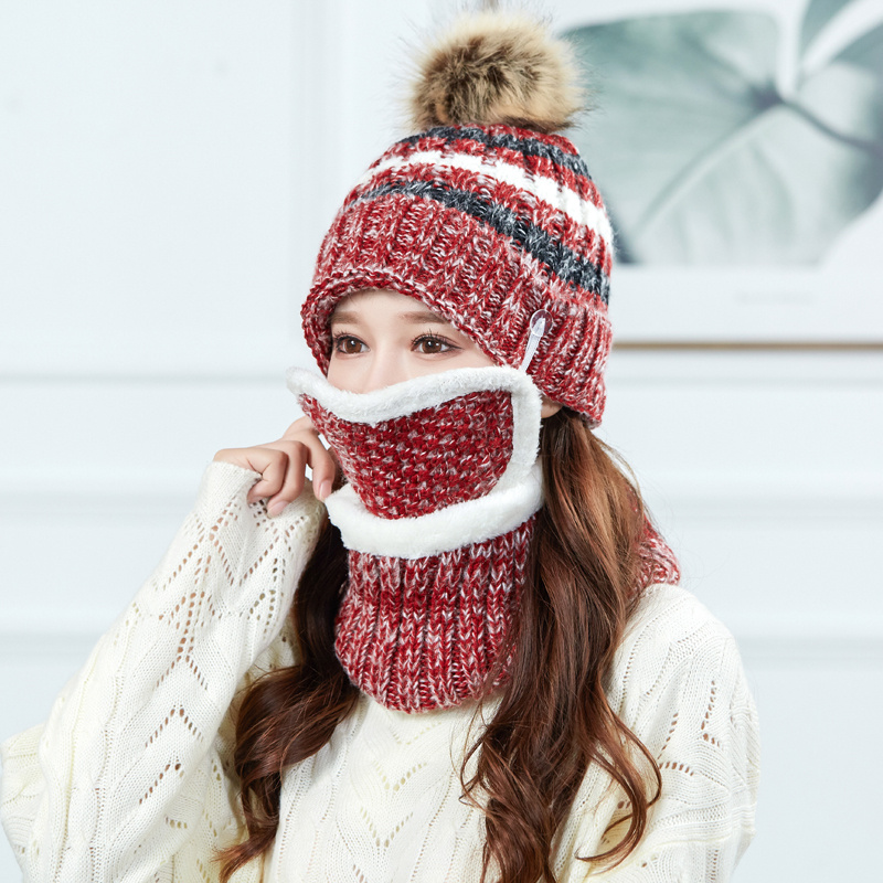 女士帽子韩国新款保暖休闲可爱带口罩多色新款针织帽子