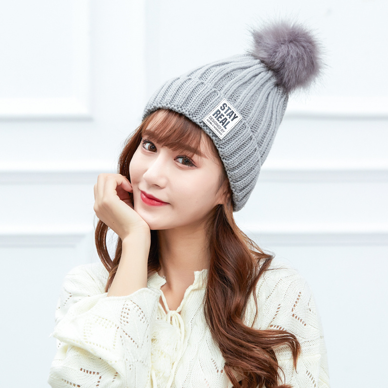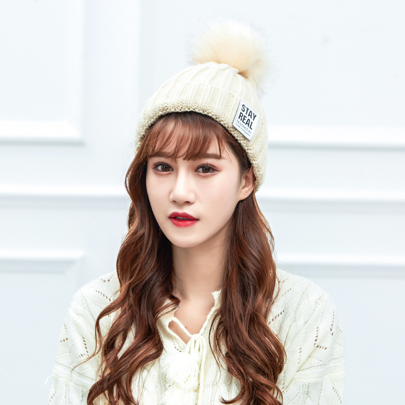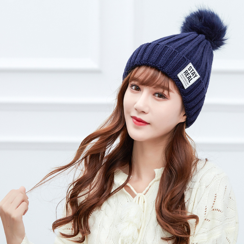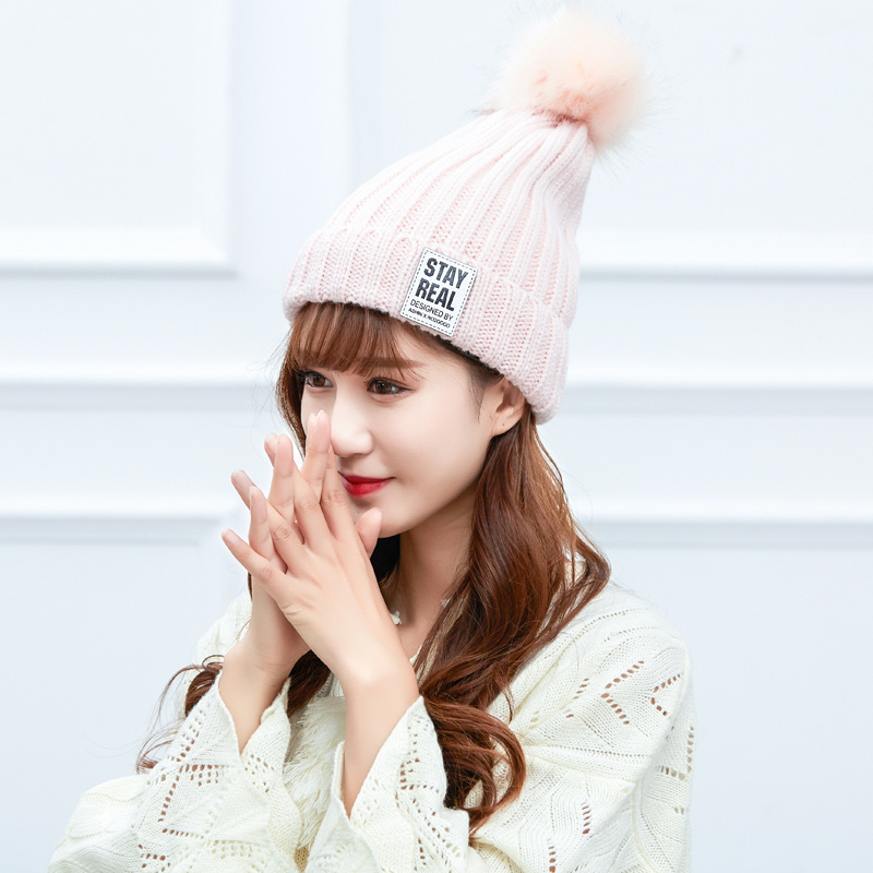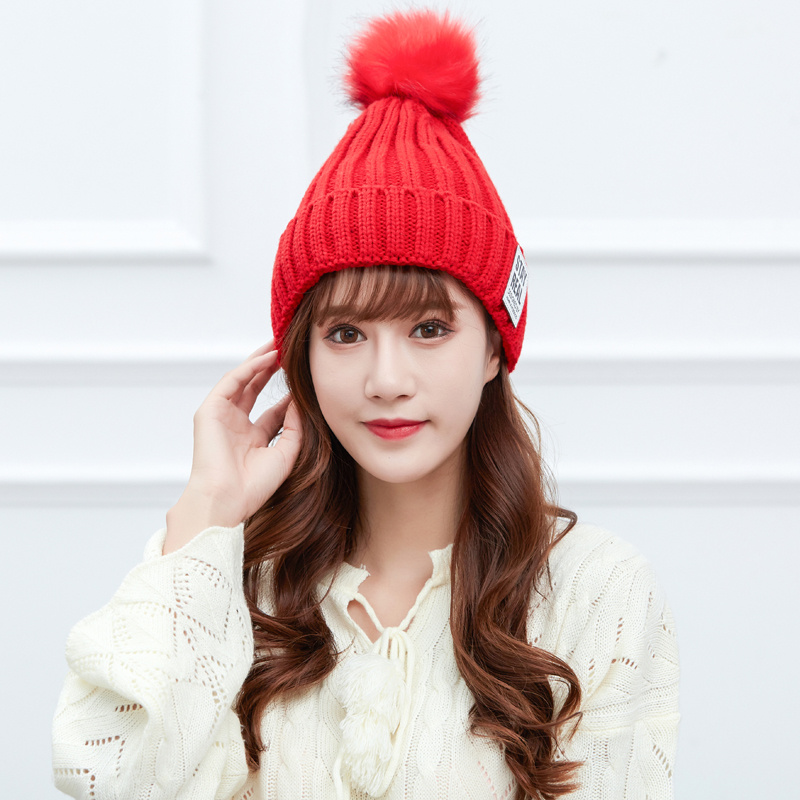 女士帽子韩国新款多色大毛球系列保暖休闲可爱针织帽子