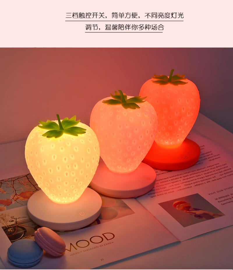 可爱韩版草莓小夜灯儿童房卧室床头ins创意女生网红少女心LED台灯