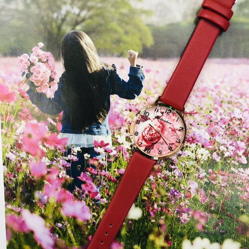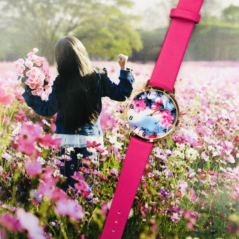 新款个性百花数字独创女士皮带手表