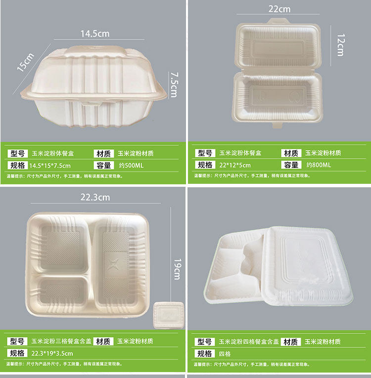 | Corn Starch Four-Grid Lunch Boxes 200 (with Lid)(玉米淀粉四格餐盒200个(带盖)) | USD $62.94 | 200 piece available |
