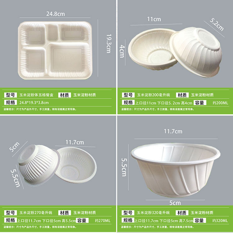 | Corn Starch Five-Grid Lunch Boxes 200 (with Lid)(玉米淀粉五格餐盒200个(带盖)) | USD $33.95 | 200 piece available |