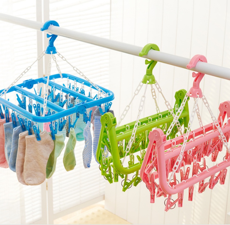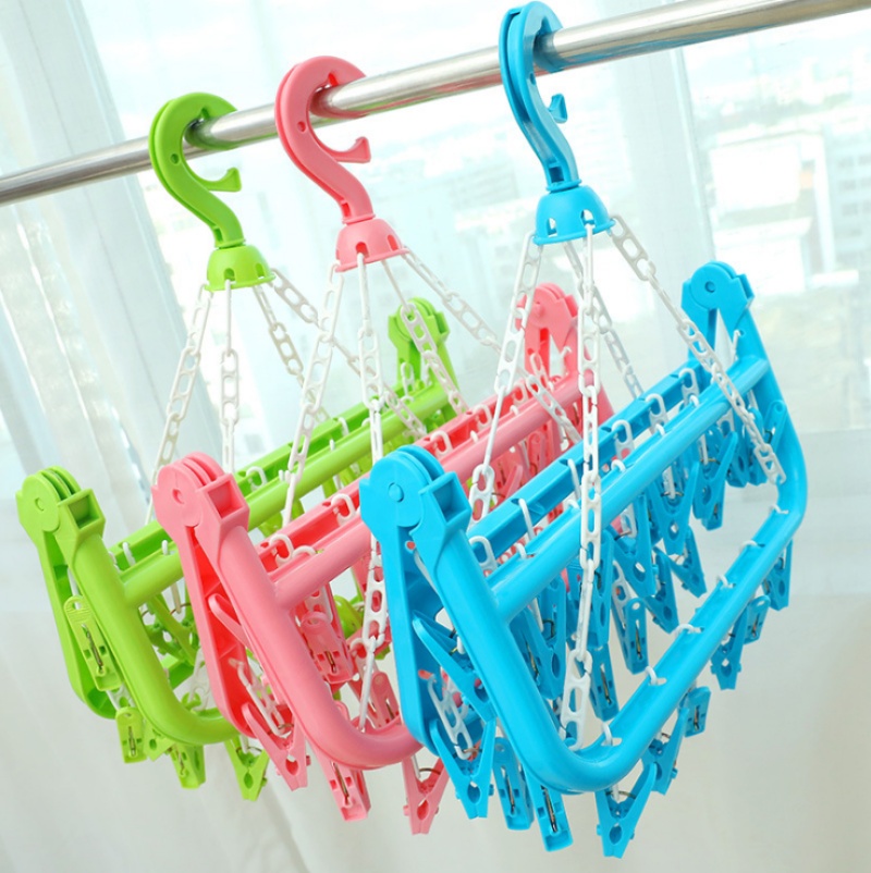 多功能可折叠衣架 塑料衣架 晾晒架 袜子内衣晒衣架 防风晾衣架