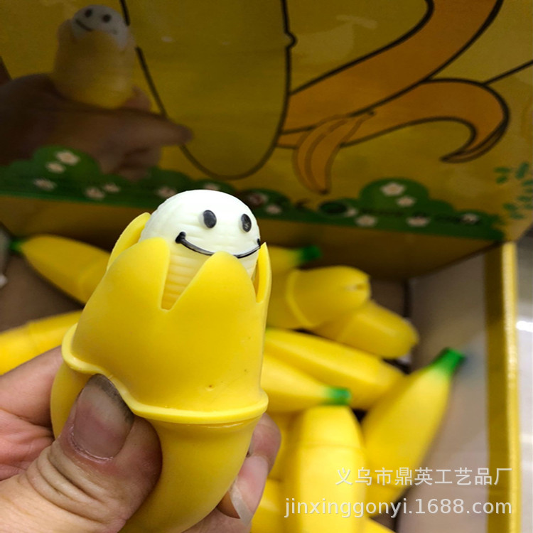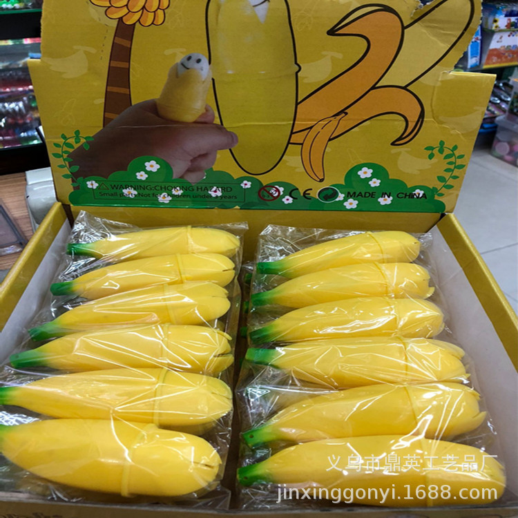 【厂货通】厂家直销爆挤香蕉发泄香蕉搞怪搞笑恶搞减压玩具 12/盒