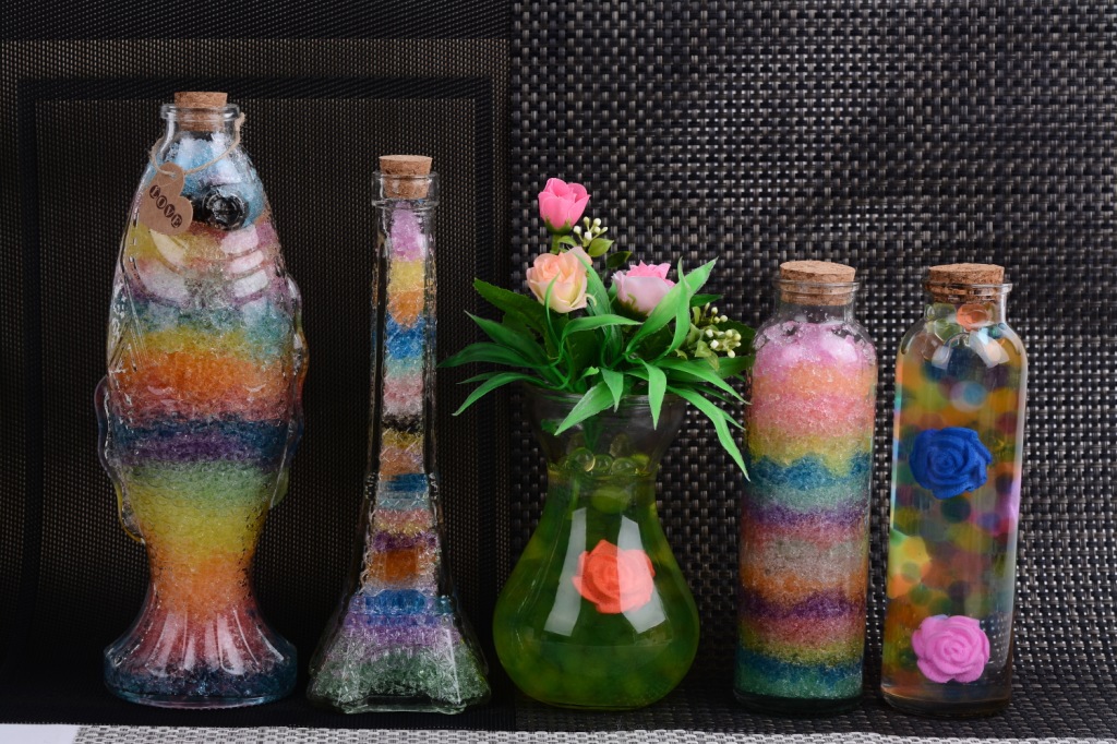 制作过程第一步,先把各种颜色珠子泡水3个小时左右