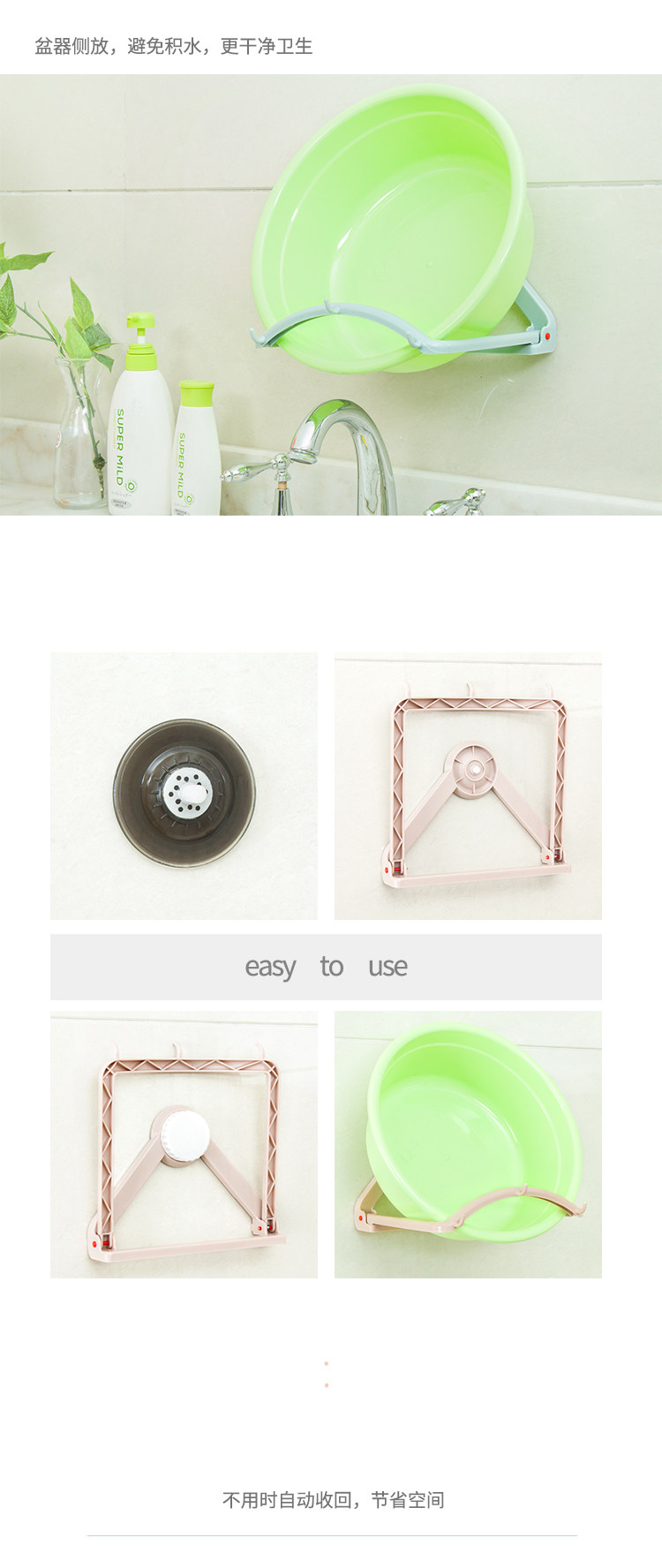 脸盆厨房可折叠脚盆1层挂架 浴室锅架置物架免钉挂架带1层塑料