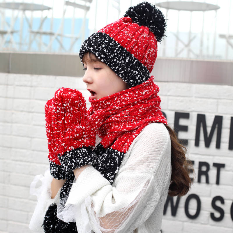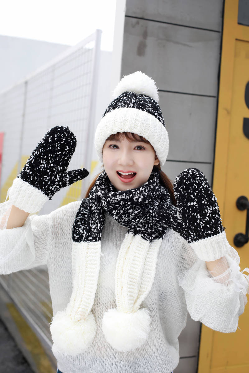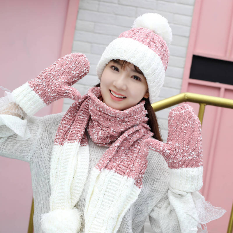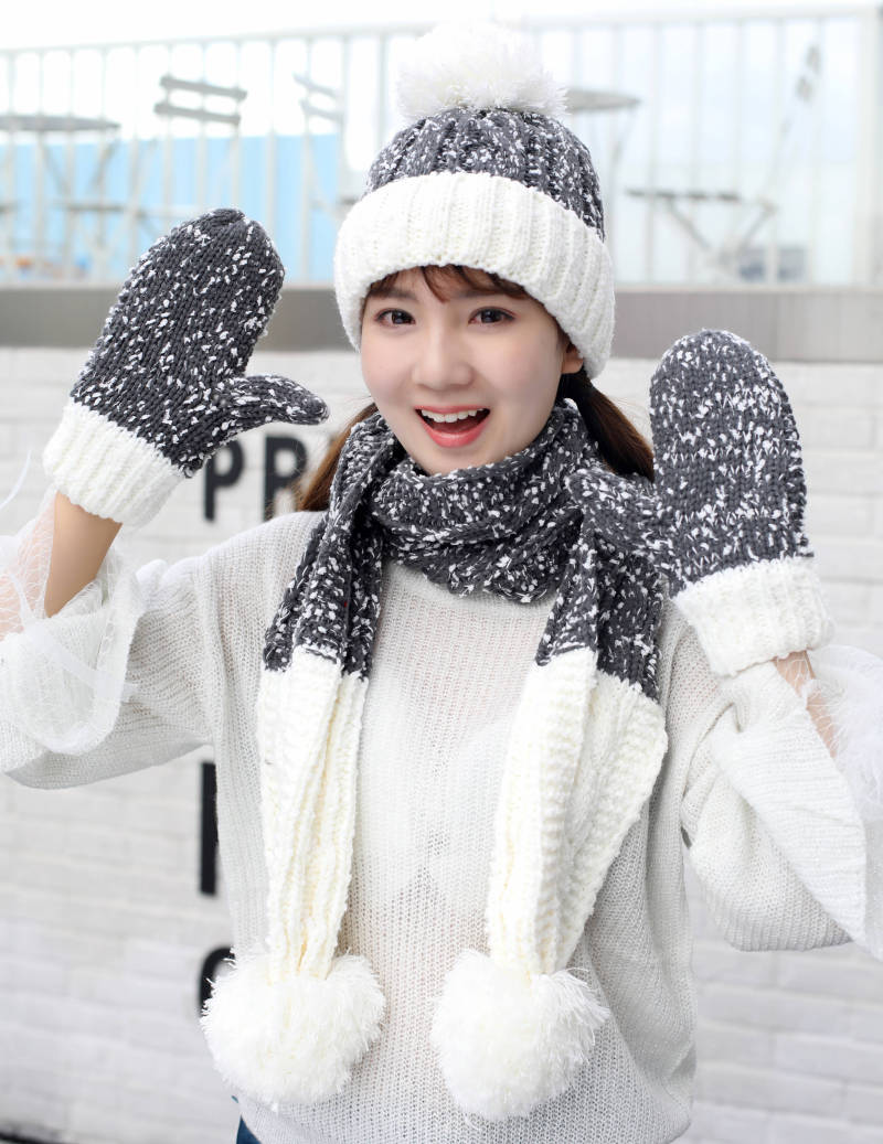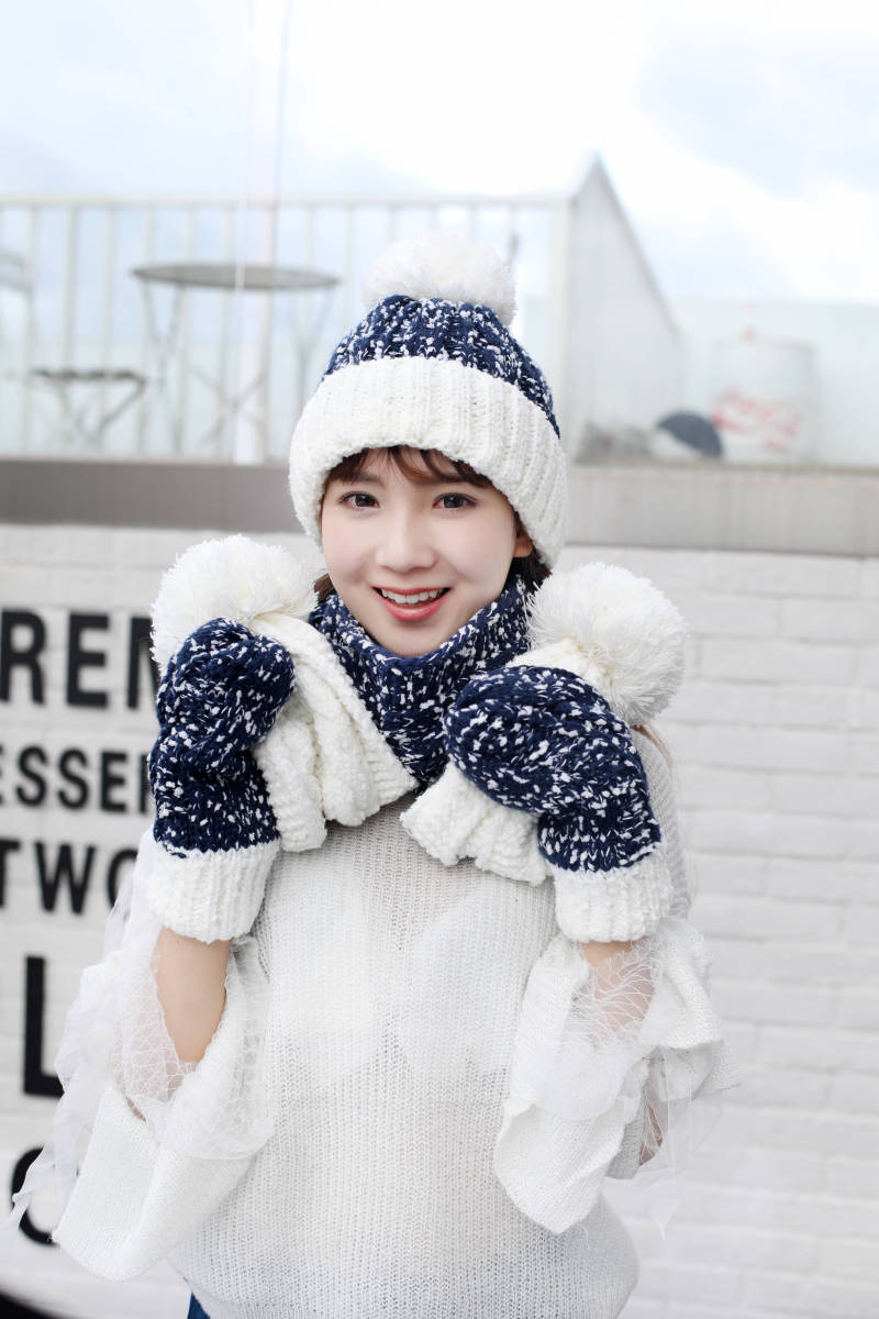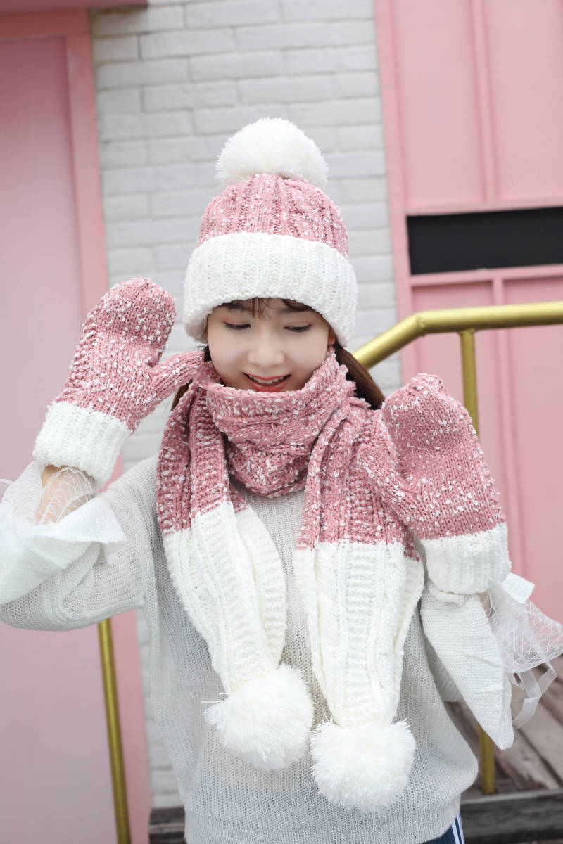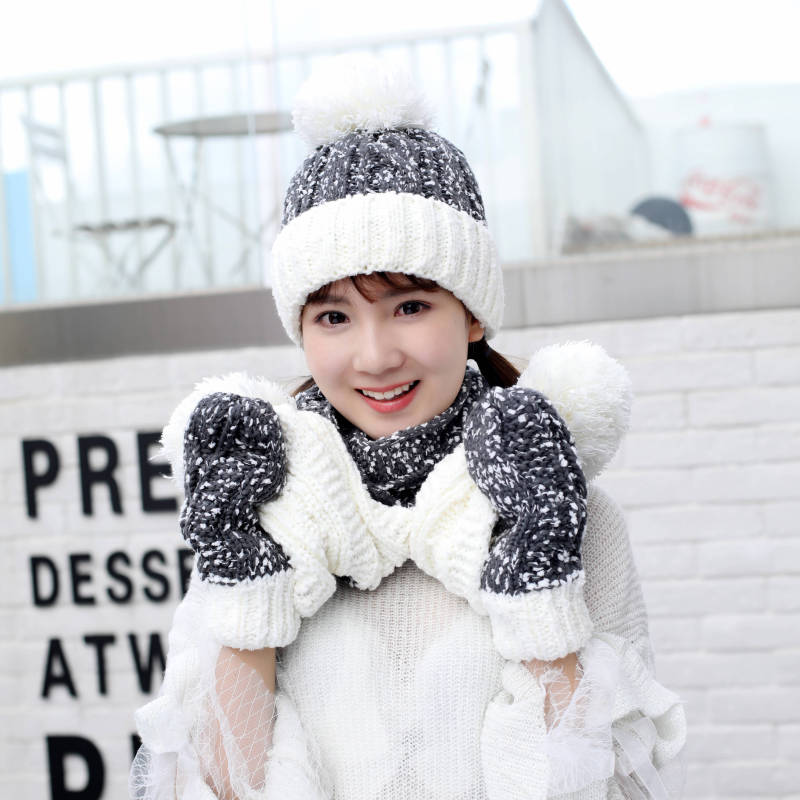 帽子时尚保暖针织帽围巾手套三件套毛线帽