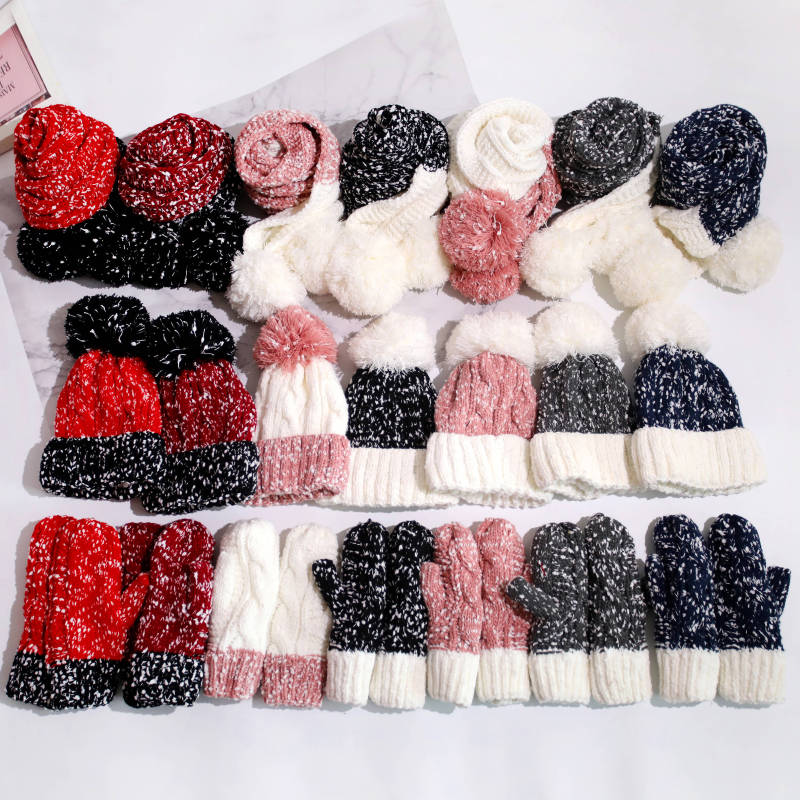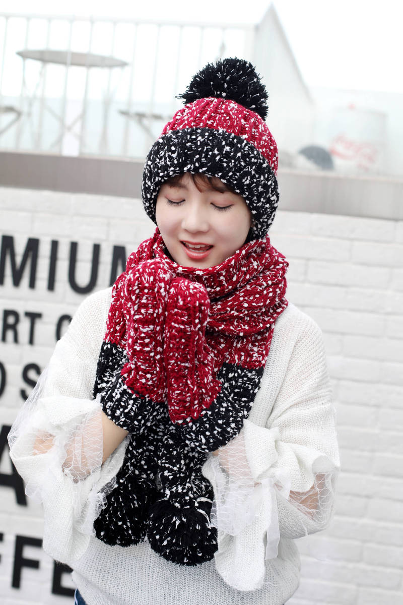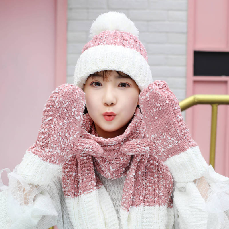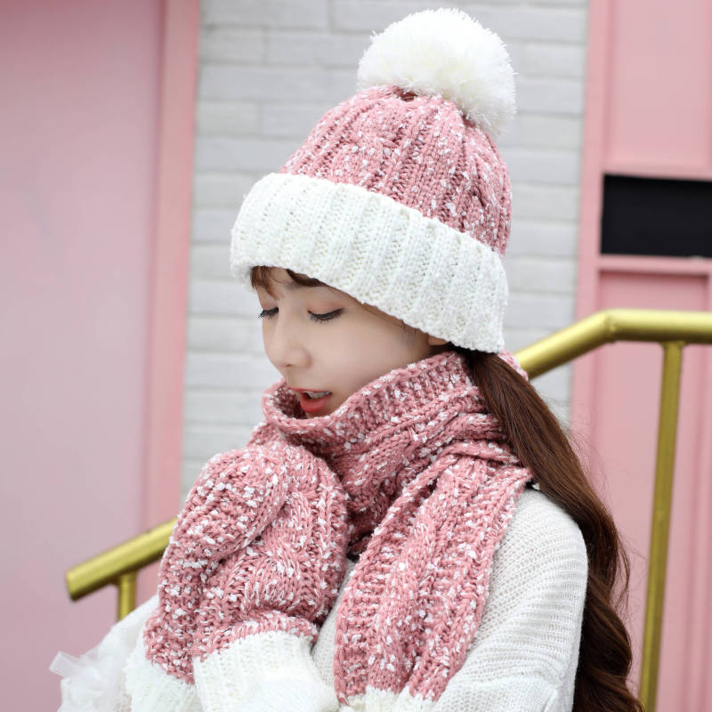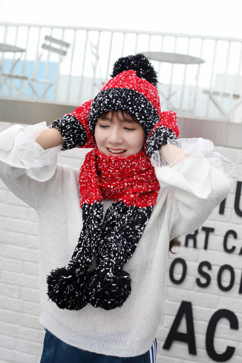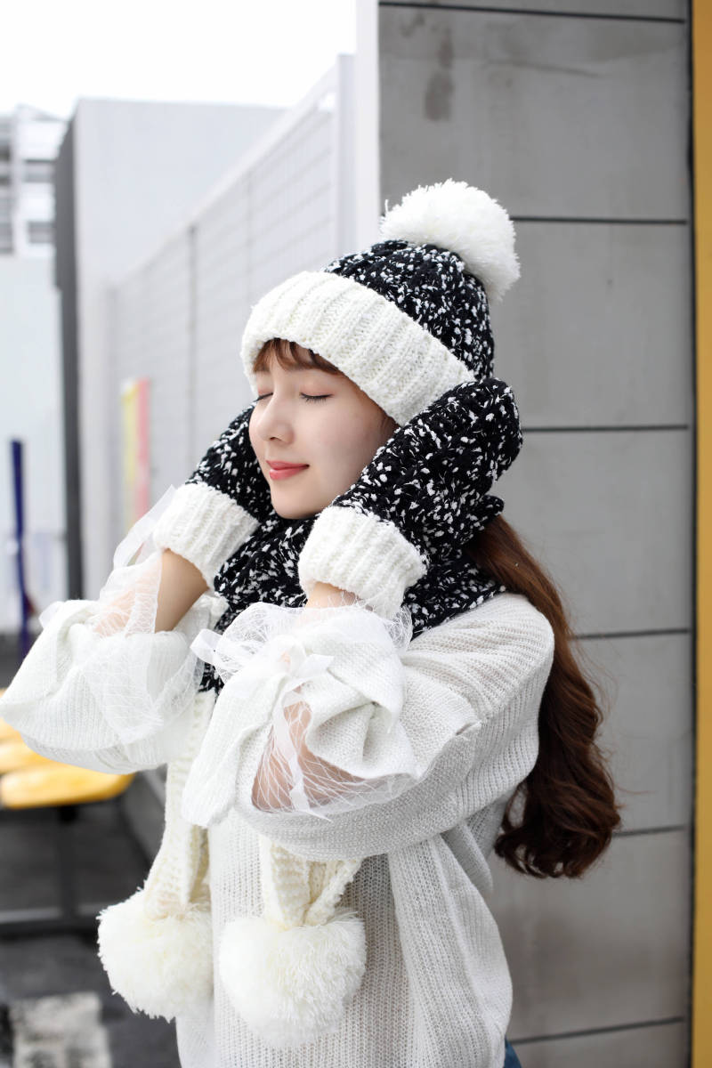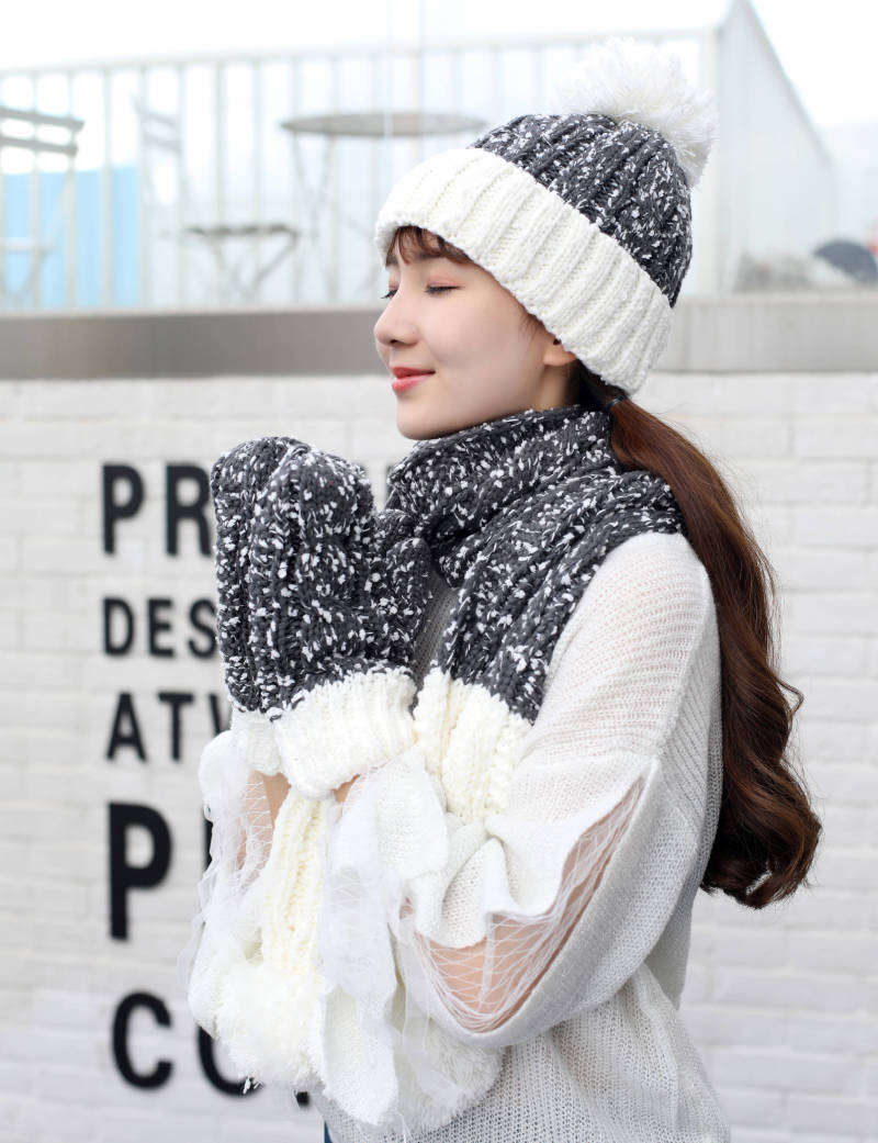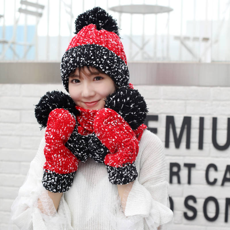 帽子时尚保暖针织帽围巾手套三件套毛线帽