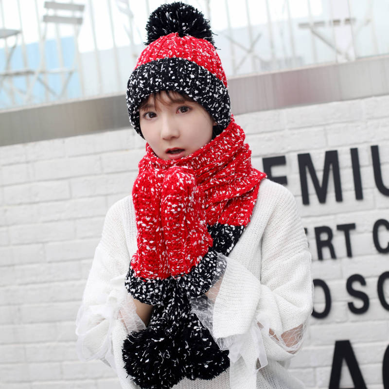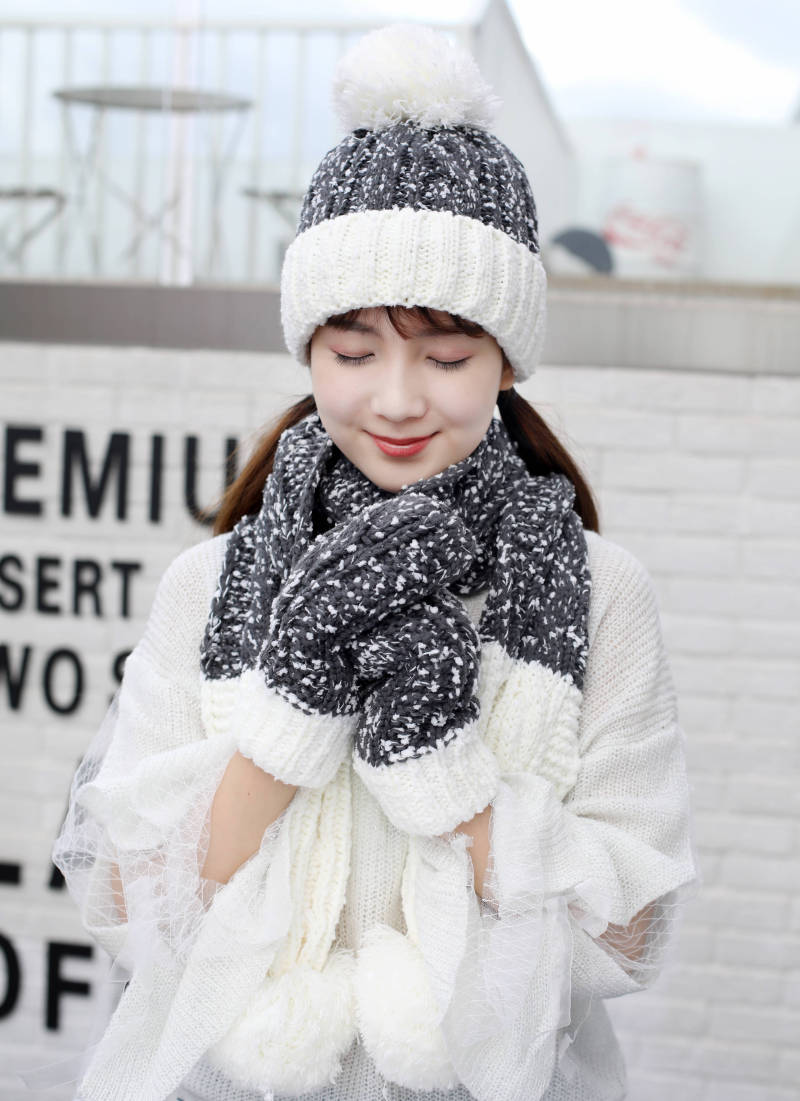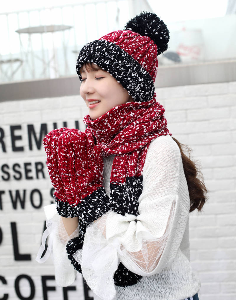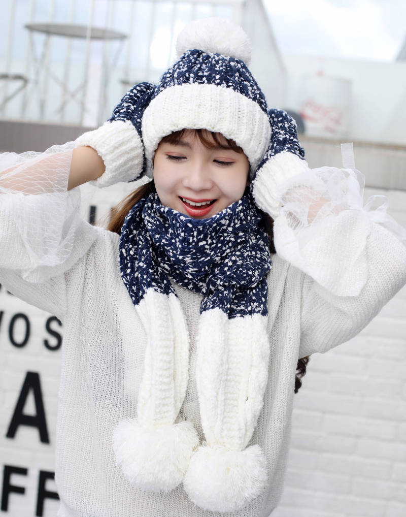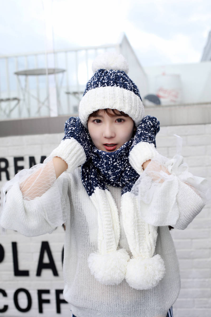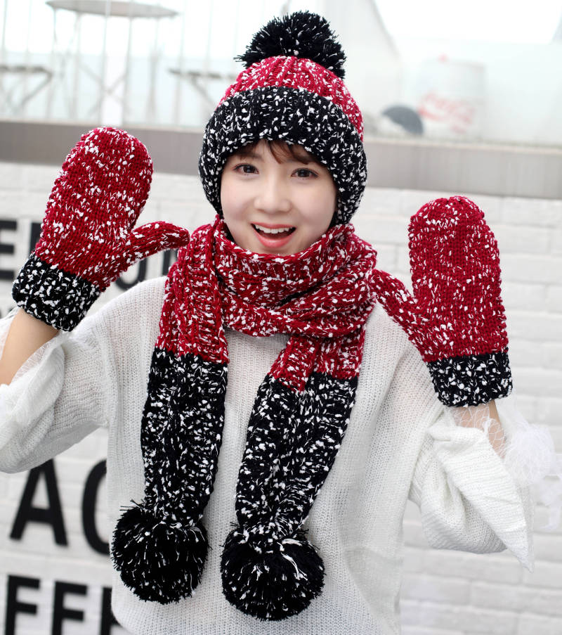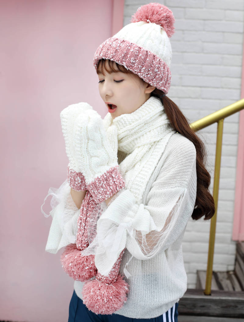帽子时尚保暖针织帽围巾手套三件套毛线帽