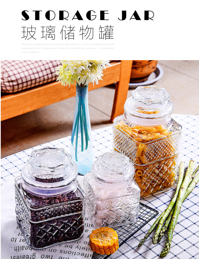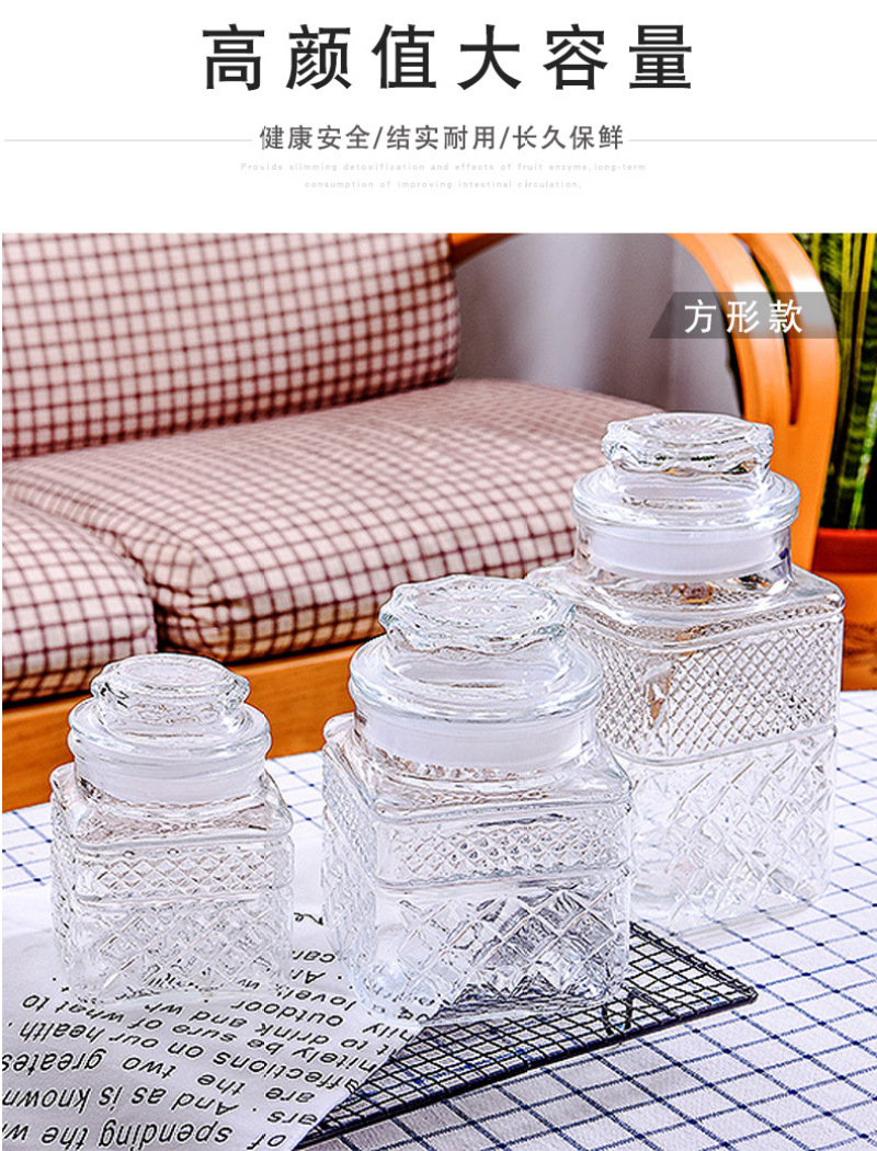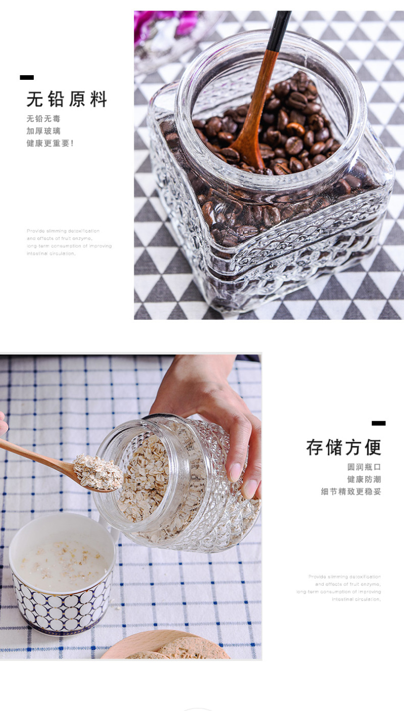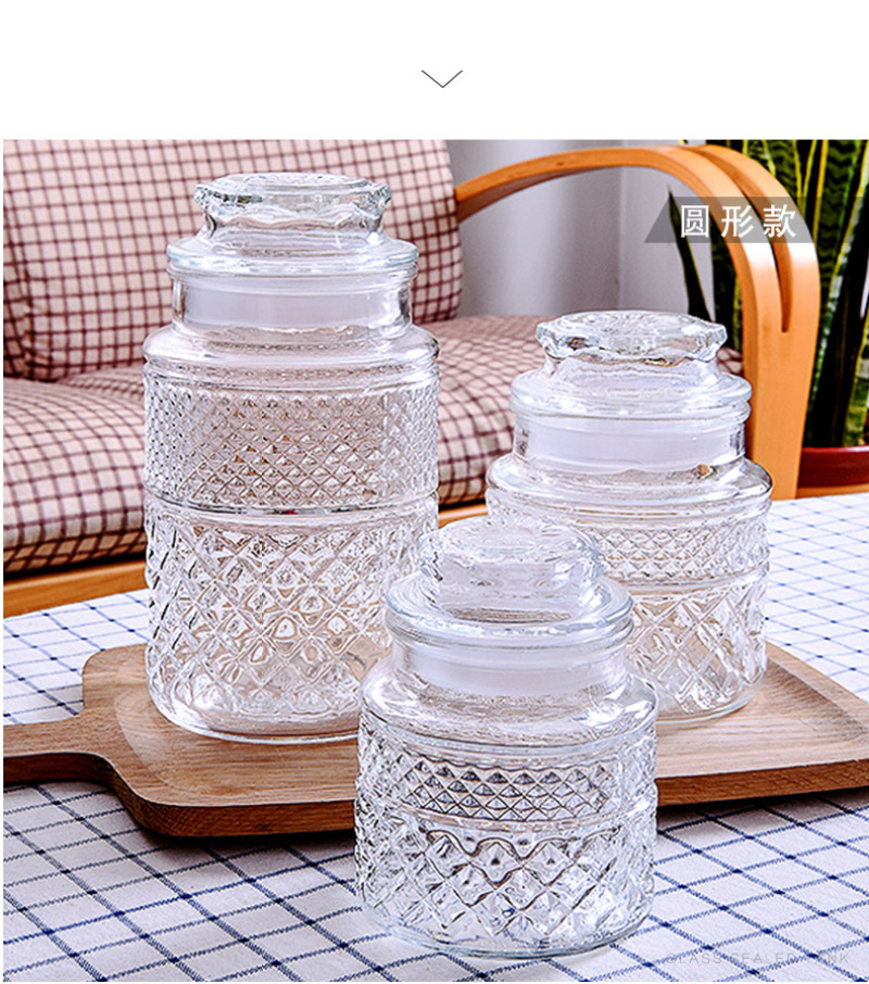 雕花玻璃储物瓶厨房收纳盒糖果密封储物罐茶叶罐干果杂粮储藏瓶子