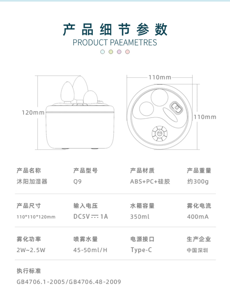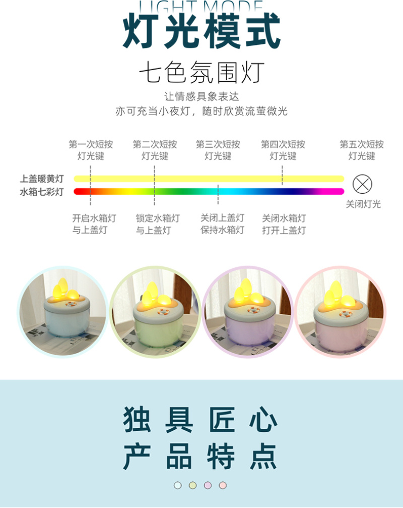 2019新品沐阳加湿器 USB迷你桌面七彩氛围灯静音加湿器