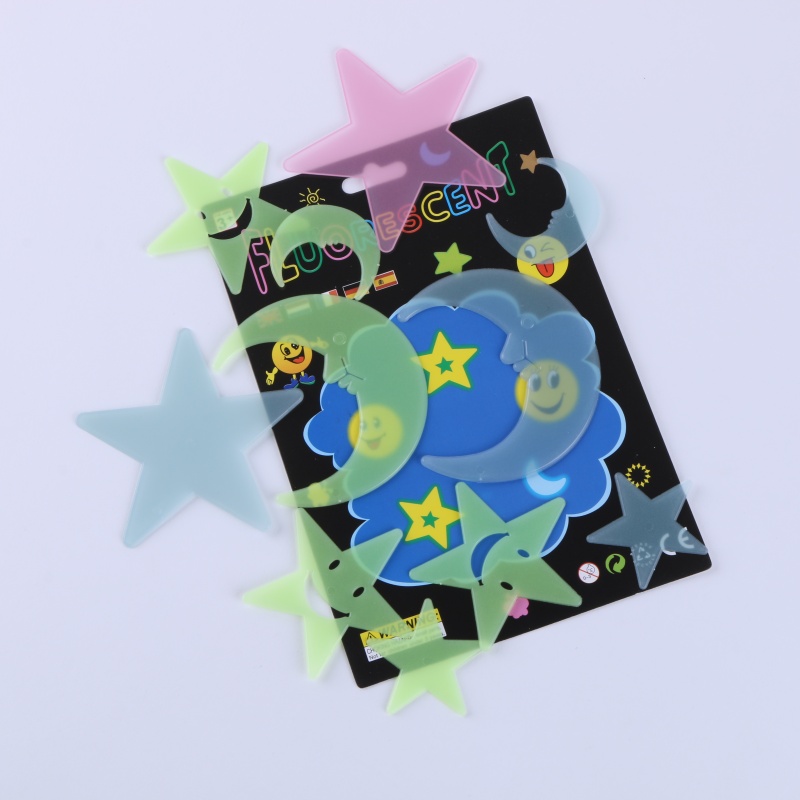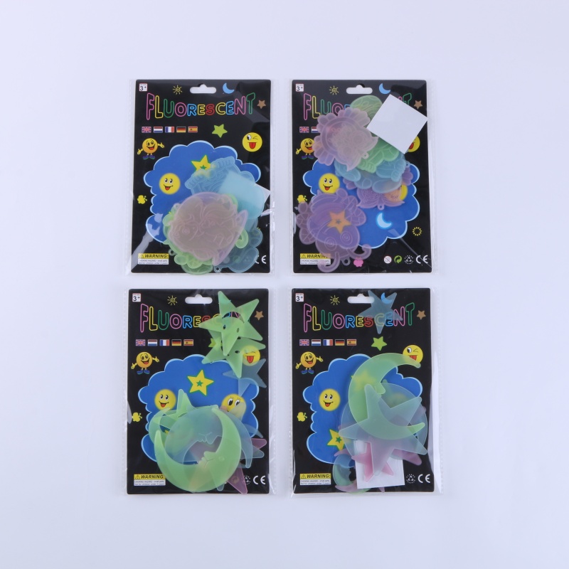 儿童星星月亮卡通动物笑脸夜光贴塑料片纸卡包装