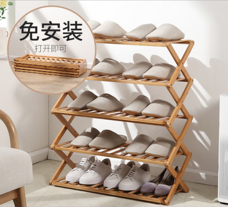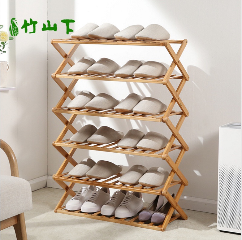 鞋架多层简易家用经济型架子宿舍门口收纳置物架免安装折叠竹鞋柜
