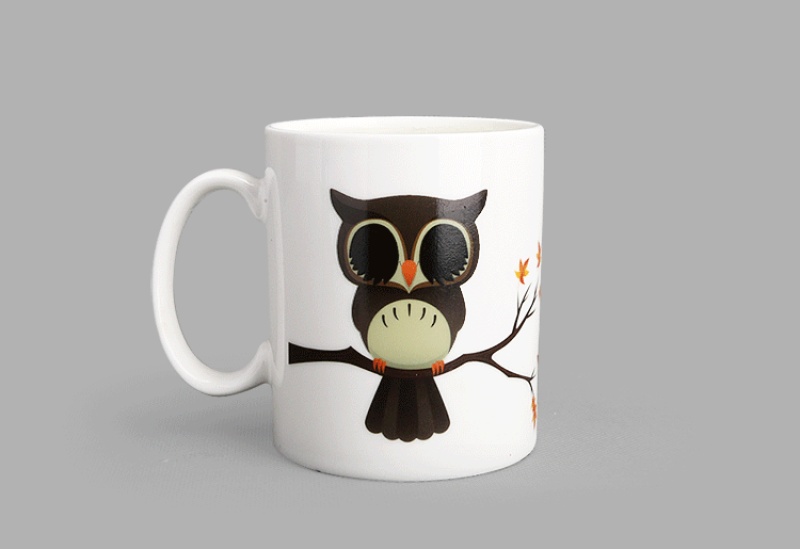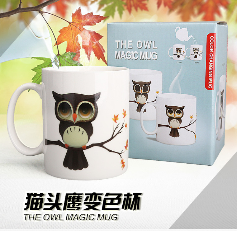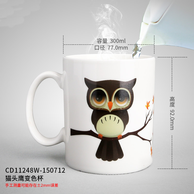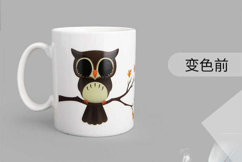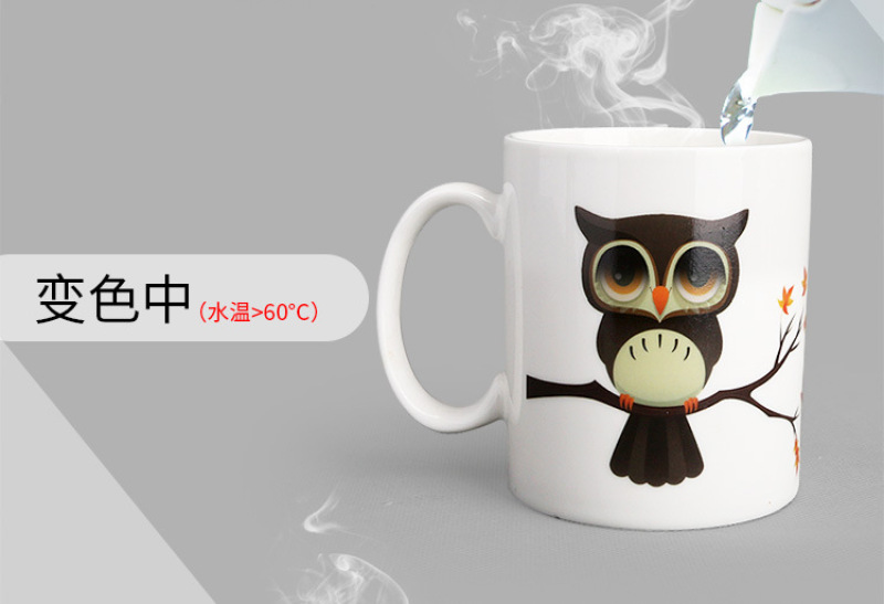 猫头鹰变色杯家用陶瓷杯创意新奇感温学生宿舍水杯礼品咖啡牛奶杯