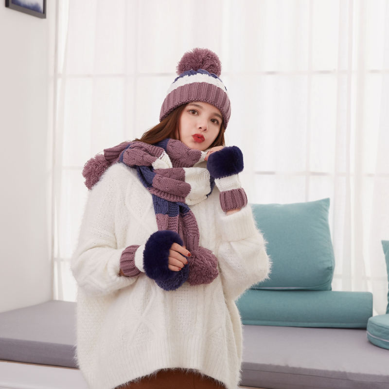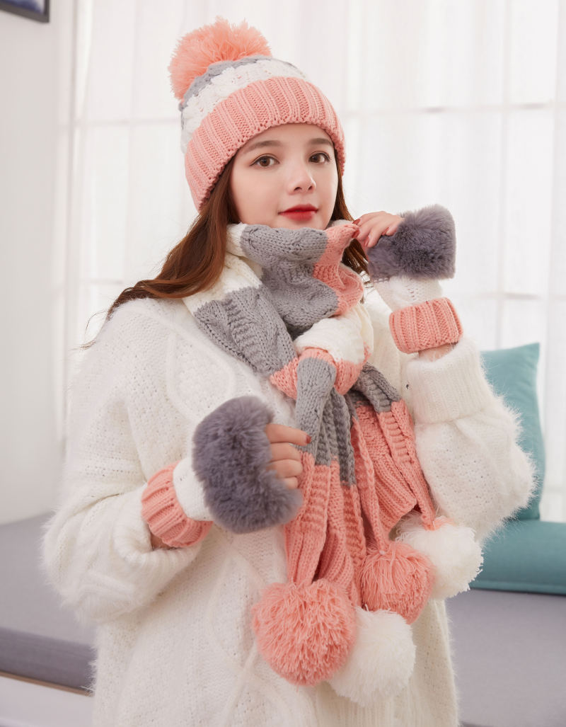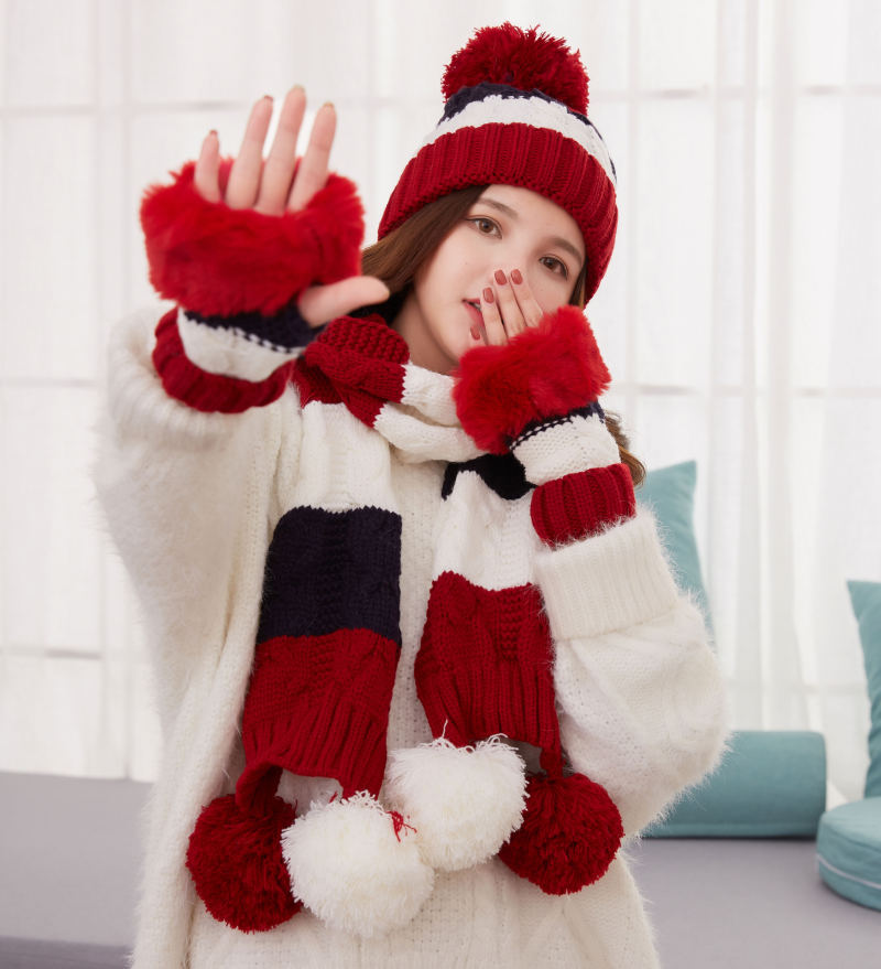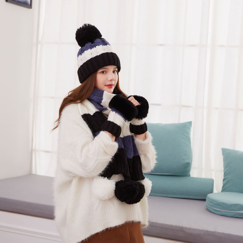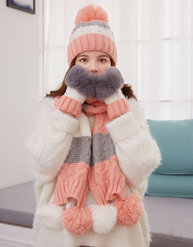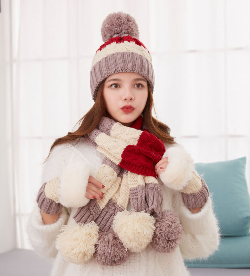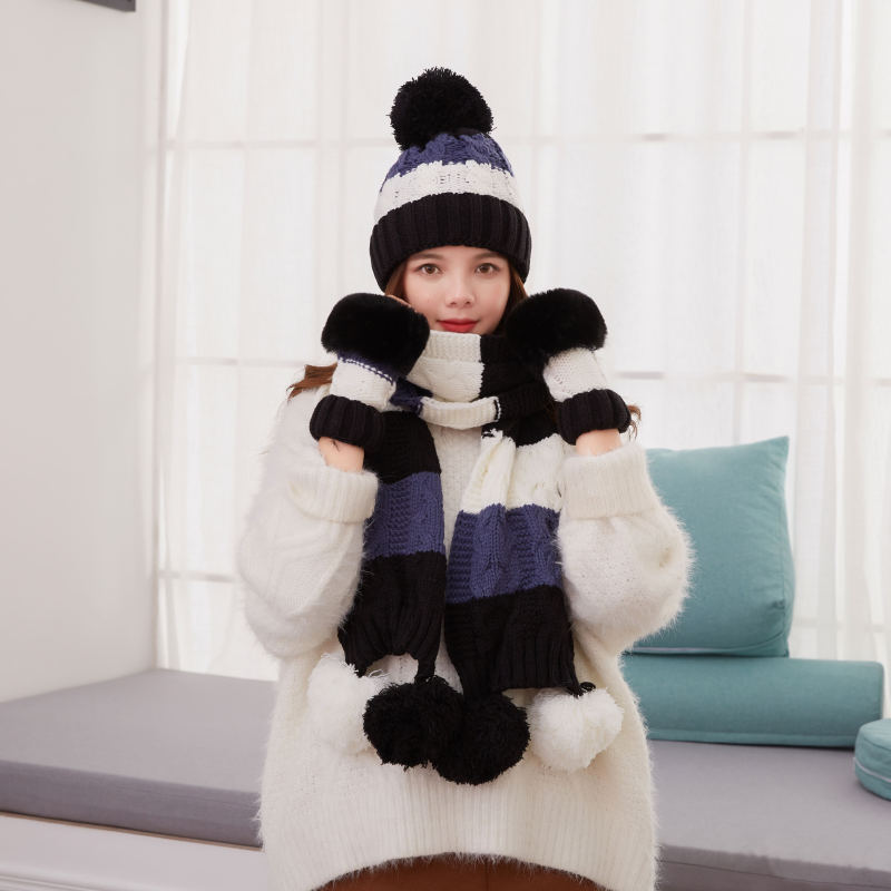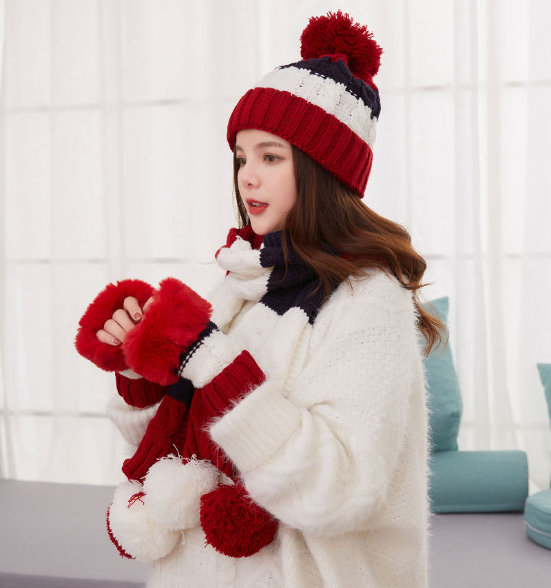 帽子女冬天围巾手套套装保暖百搭骑车帽加绒帽