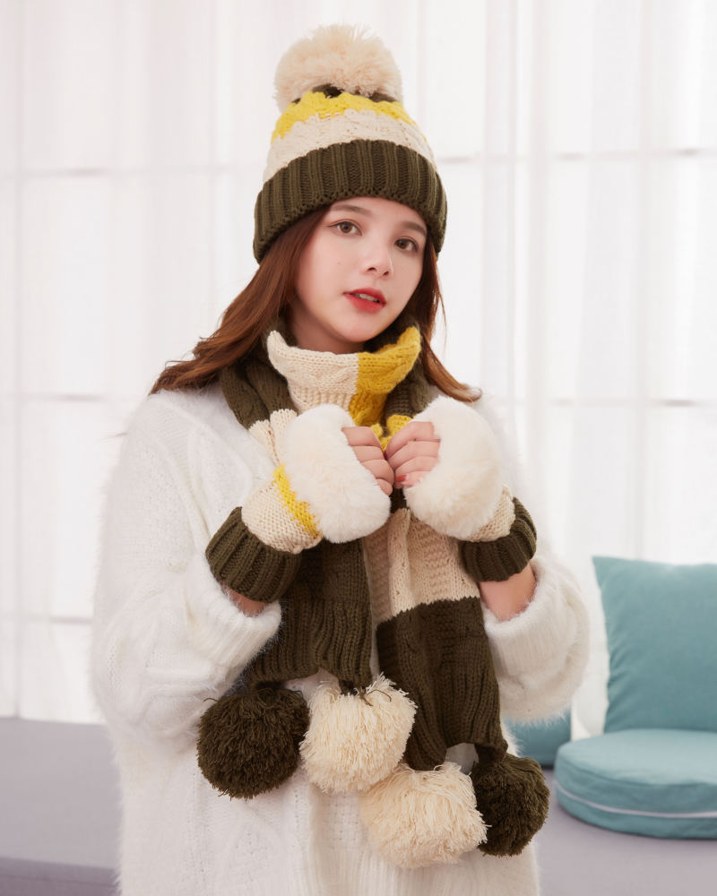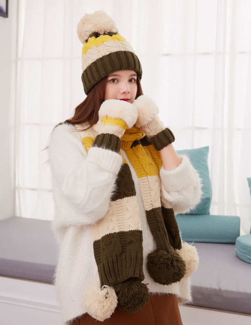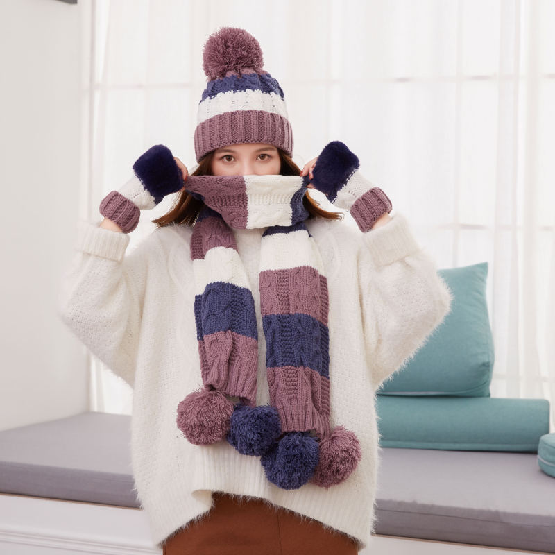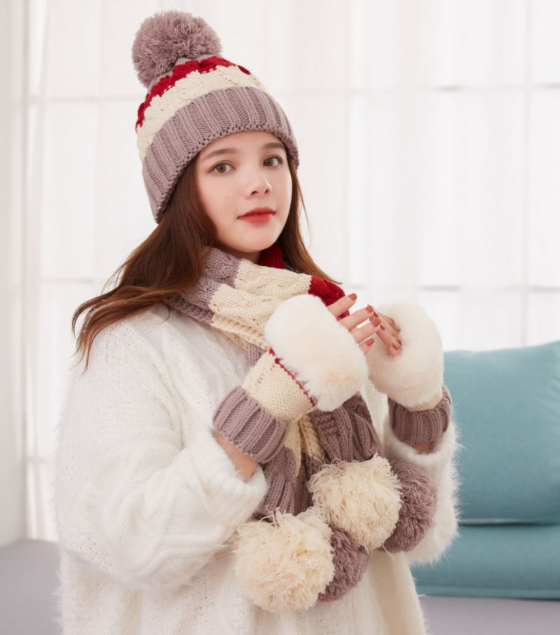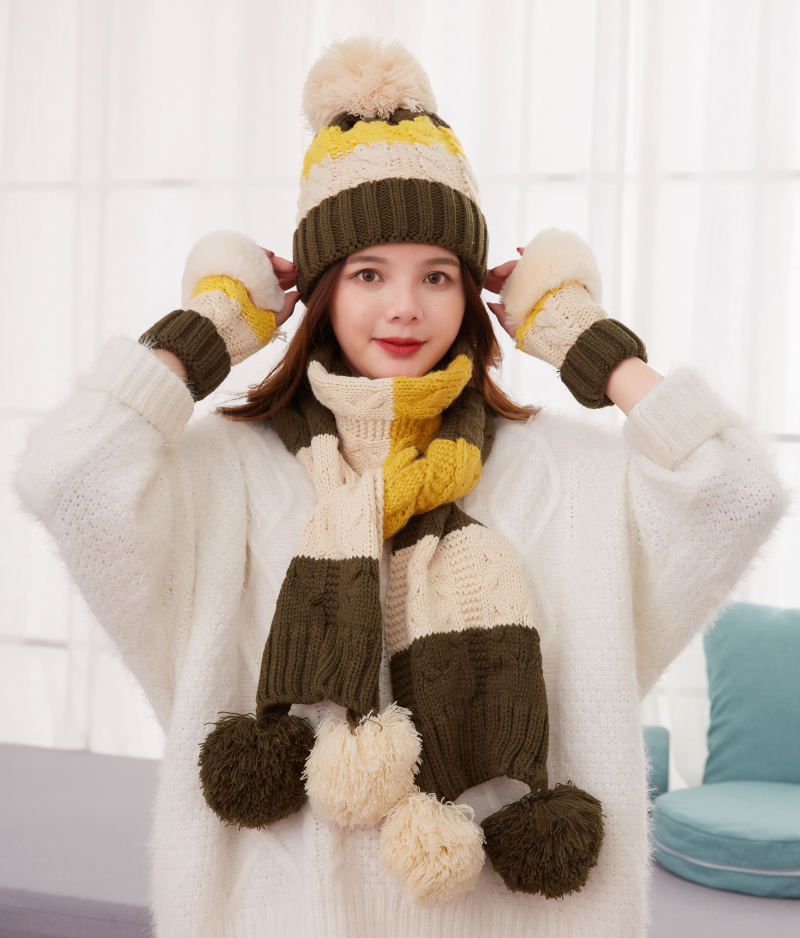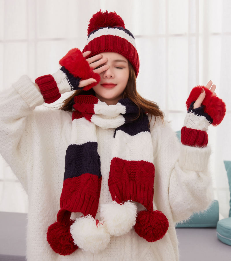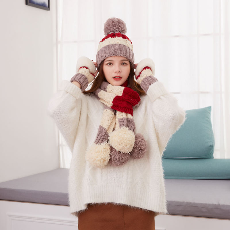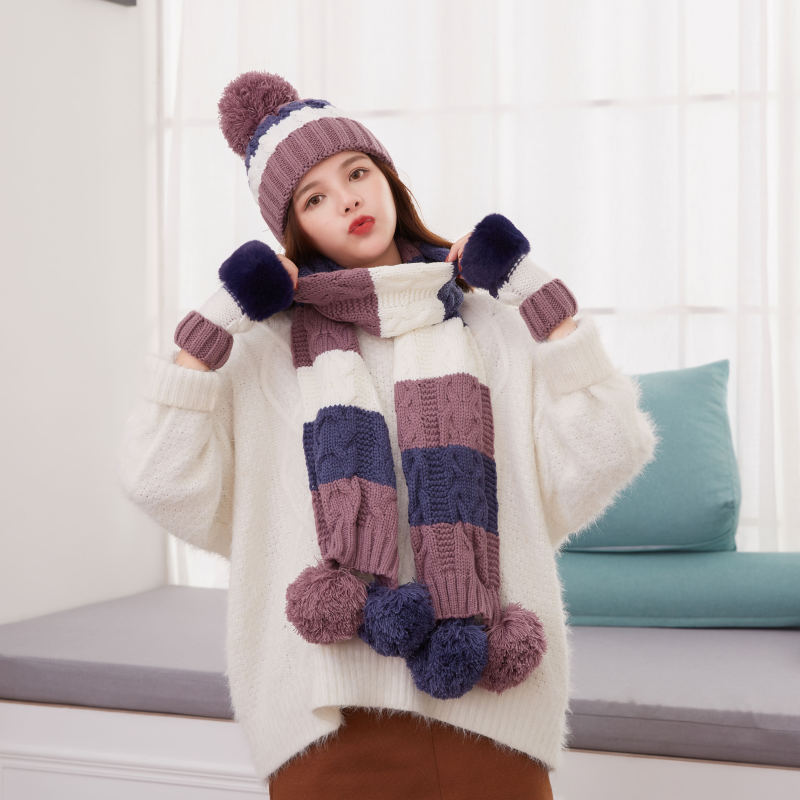 帽子女冬天围巾手套套装保暖百搭骑车帽加绒帽