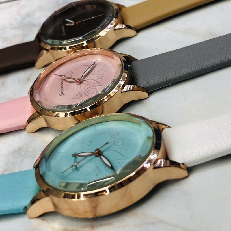 新款浮雕蝴蝶花个性拼接水晶面女士手表