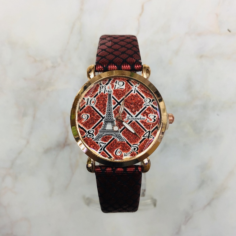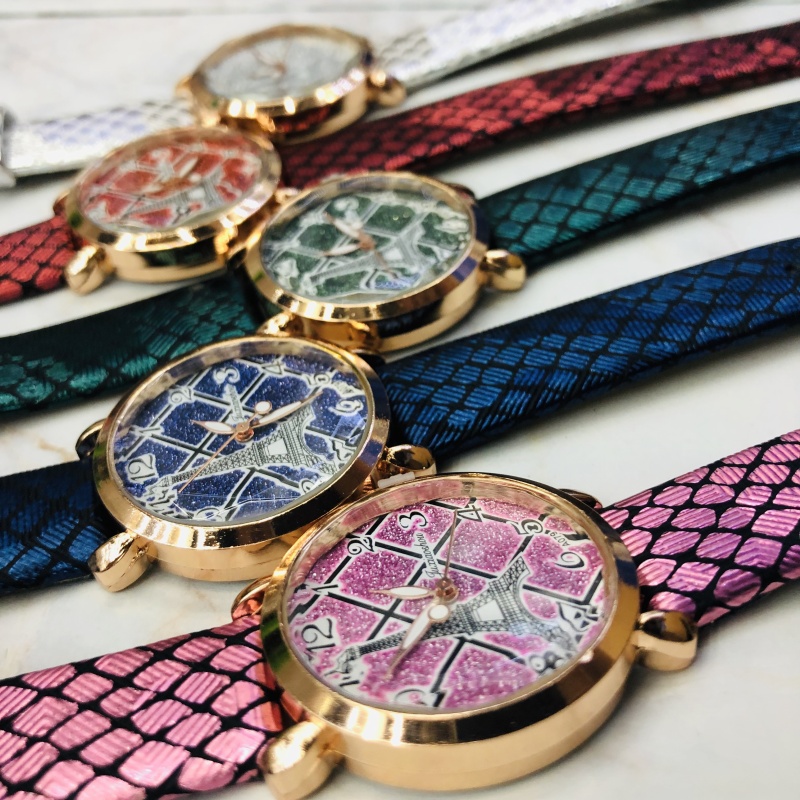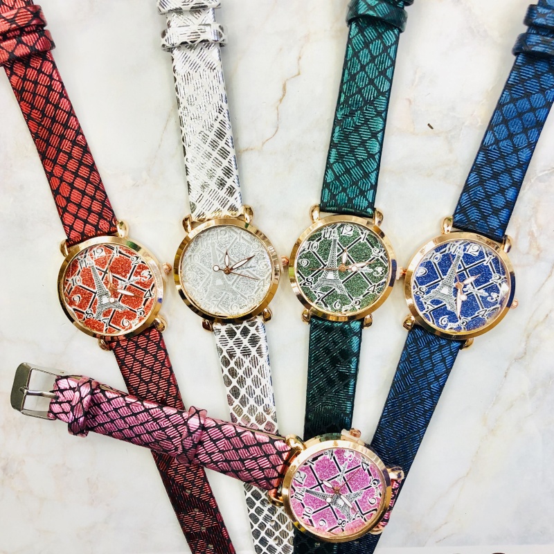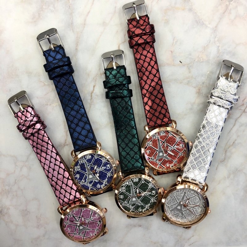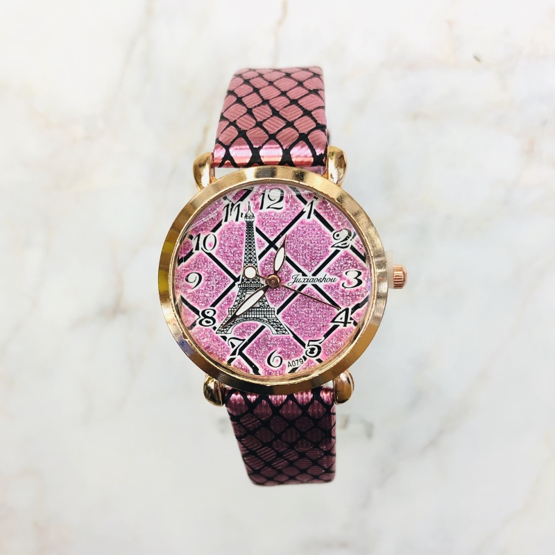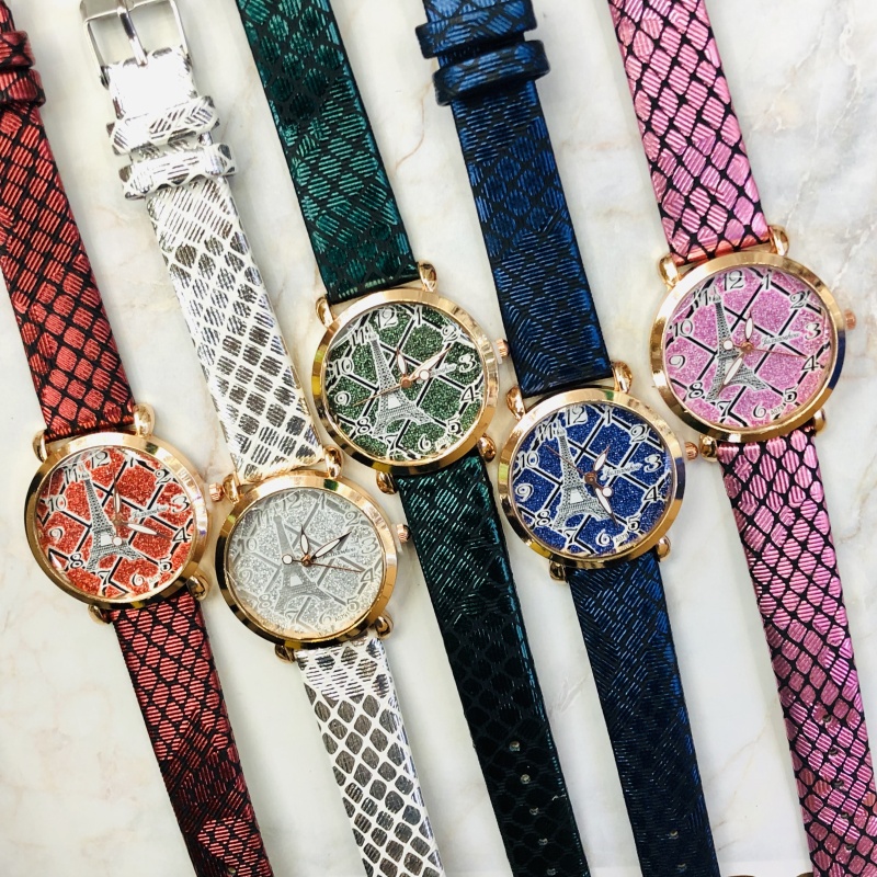 新款个性蛇纹水晶面闪粉铁塔女士手表
