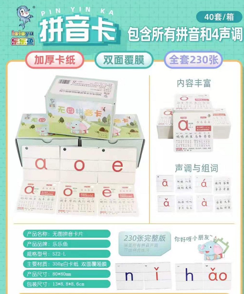 252张儿童认识学习的生字卡。环保白卡纸张,