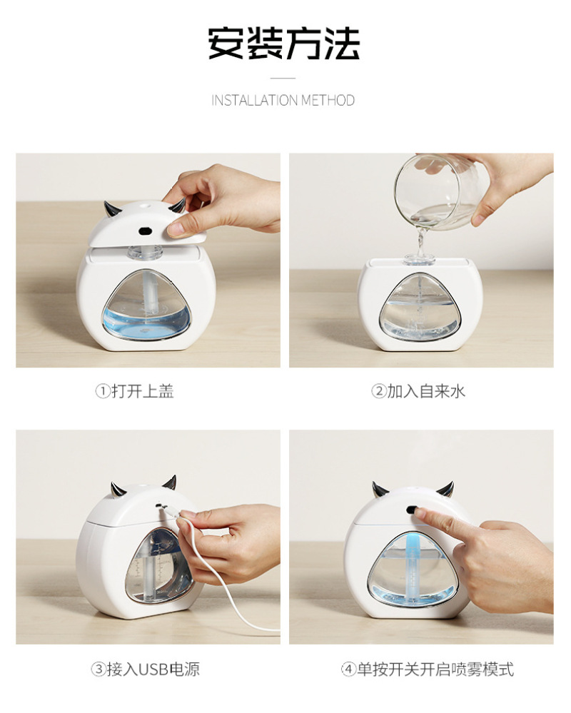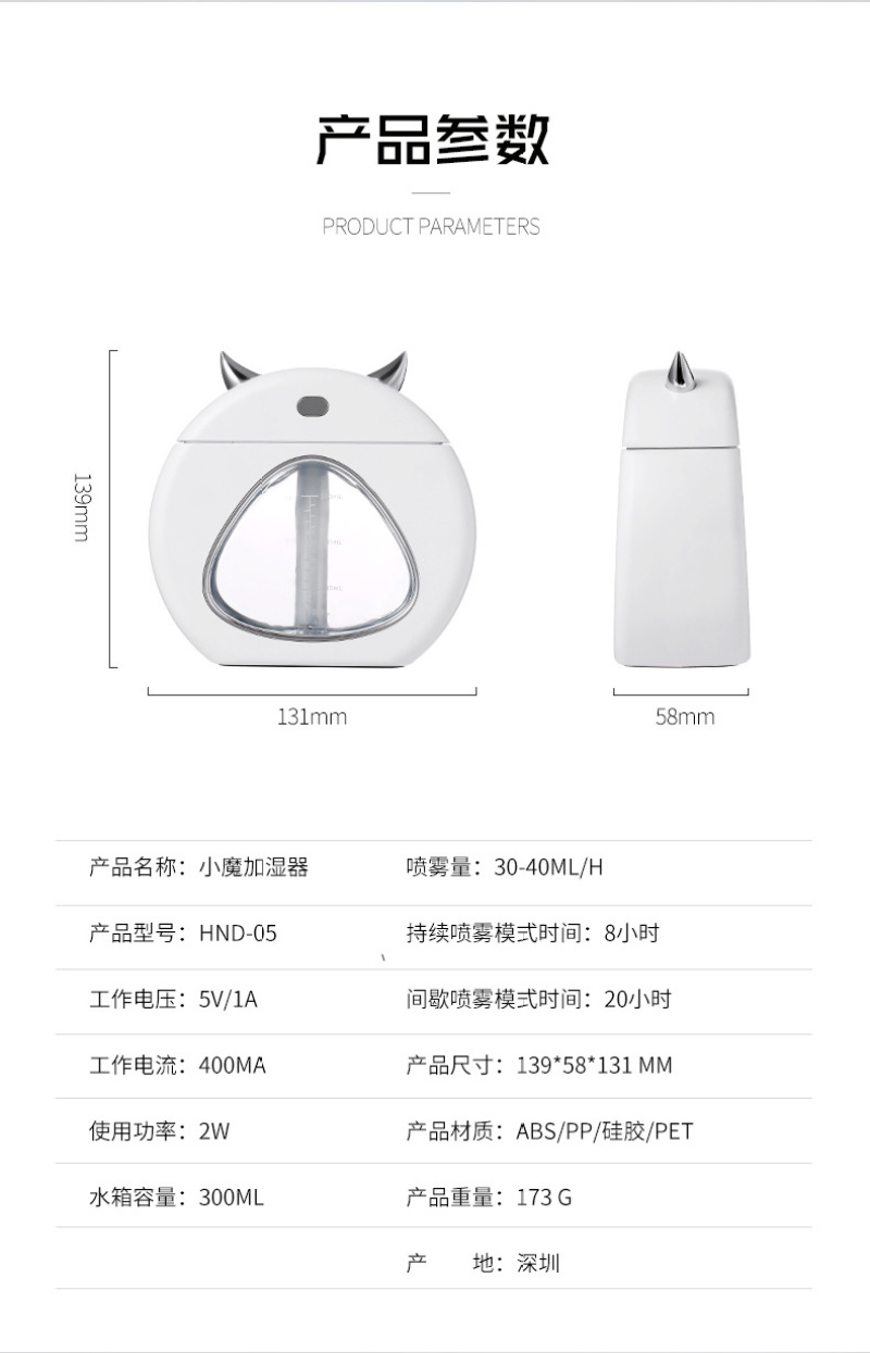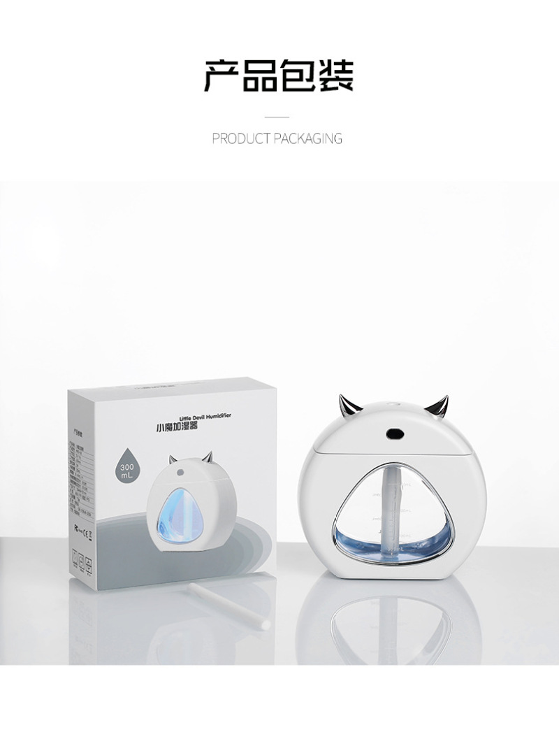 产品标配: 小魔加湿器一台,棉棒一根,数据线一条,中英文说明书一份