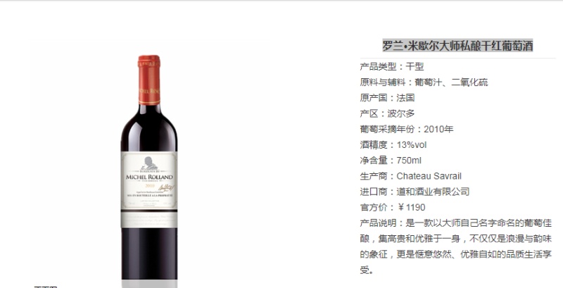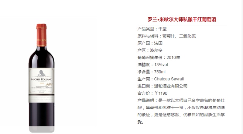 2010法国进口波尔多红酒道和罗兰·米歇尔私酿干红葡萄酒