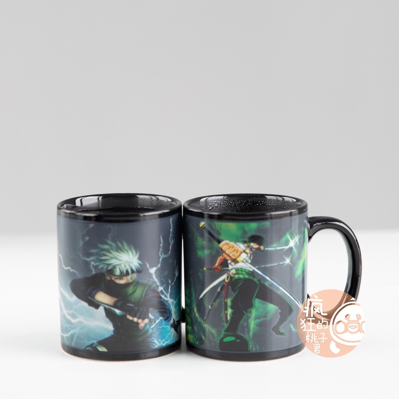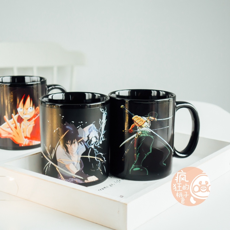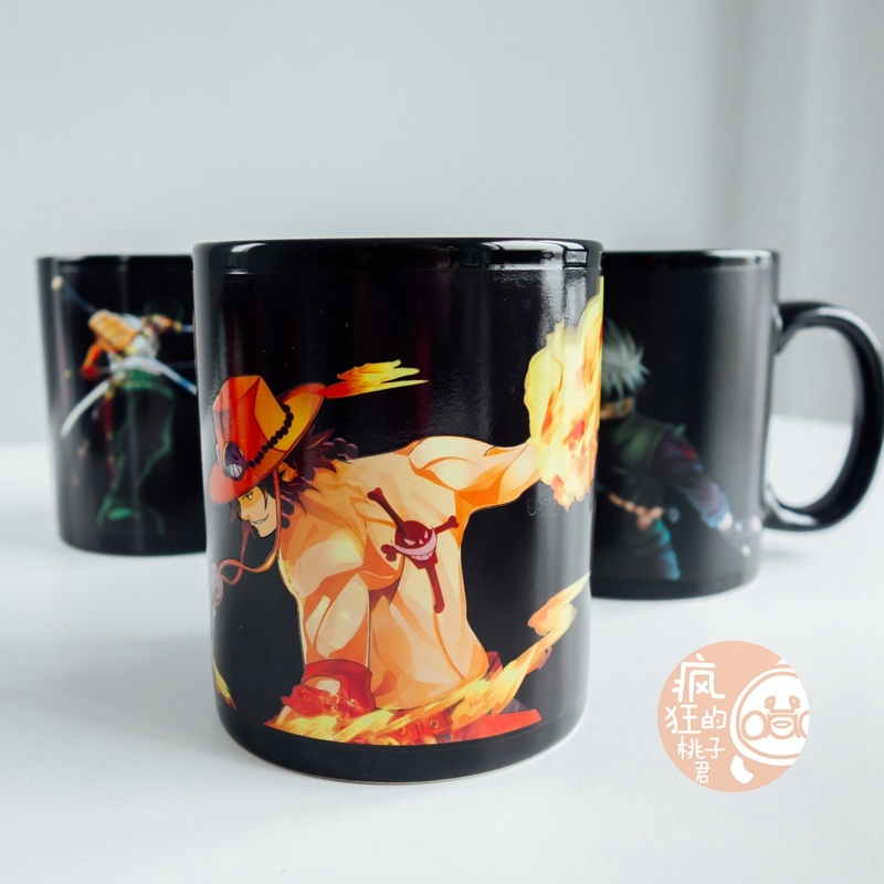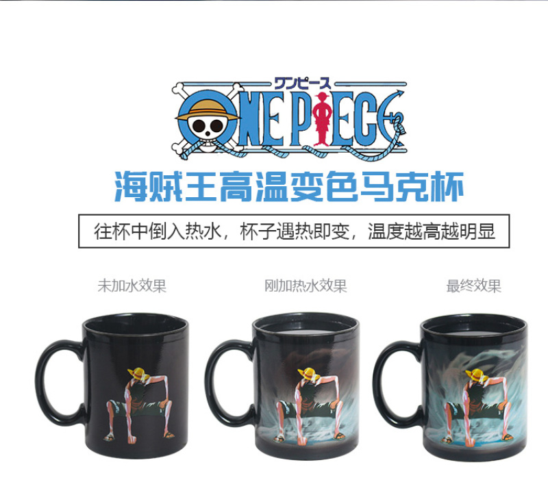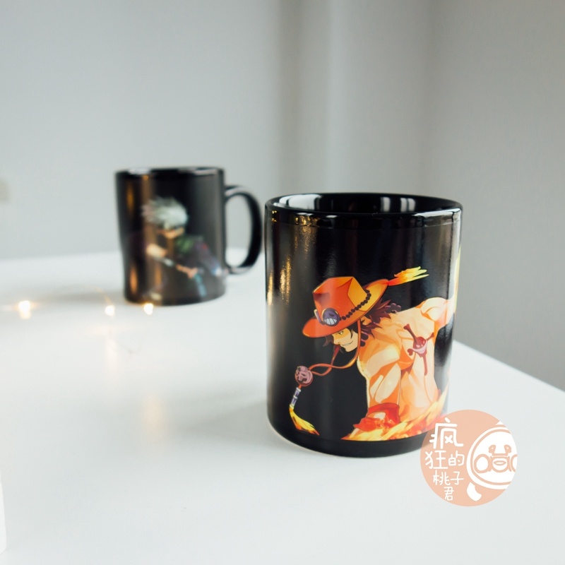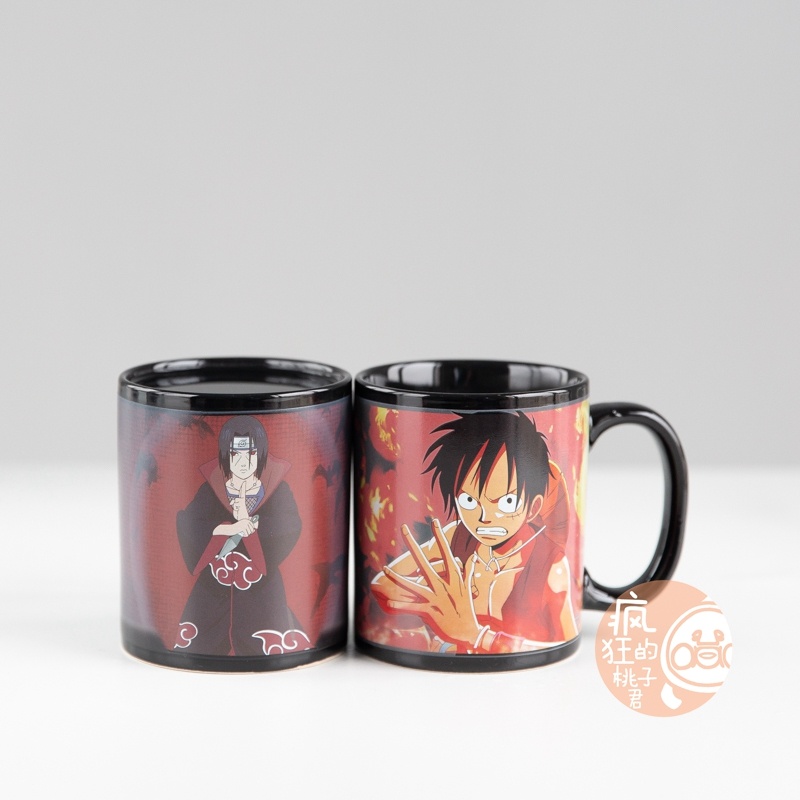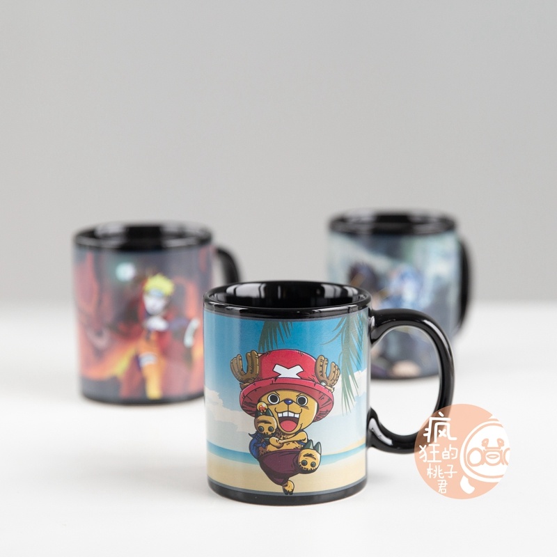 抖音爆款加热变色水海贼王动漫火影忍者水杯日式大容量马克杯子