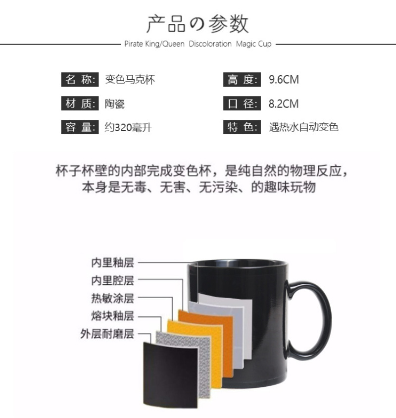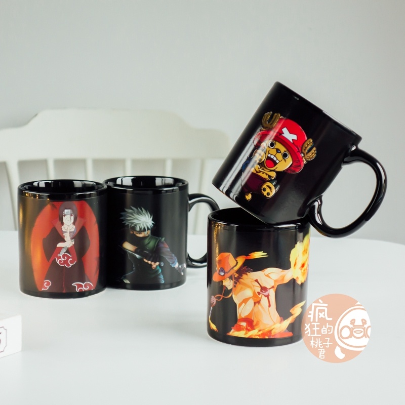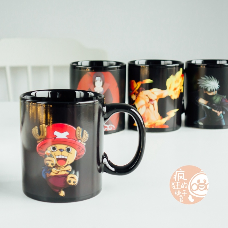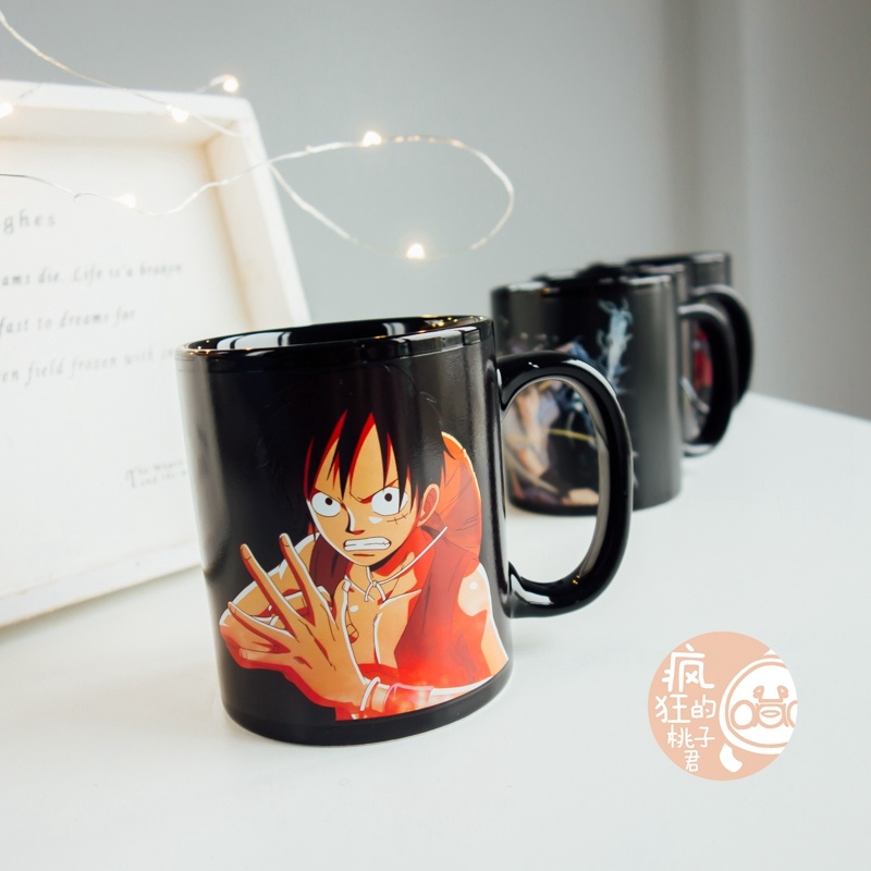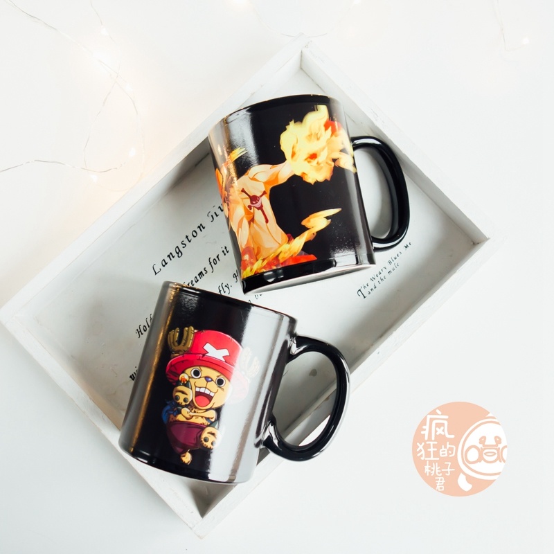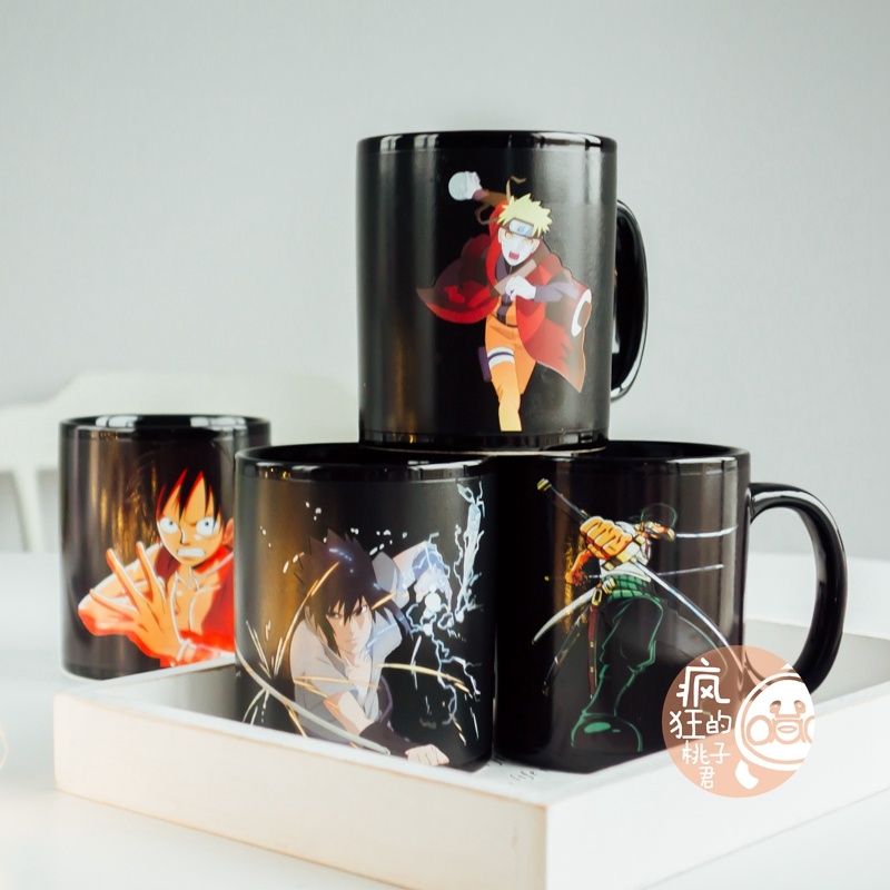 抖音爆款加热变色水海贼王动漫火影忍者水杯日式大容量马克杯子