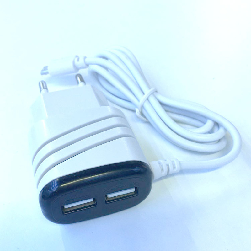 欧规美规双USB带线充电器 micro v8 手机充电头一体连线